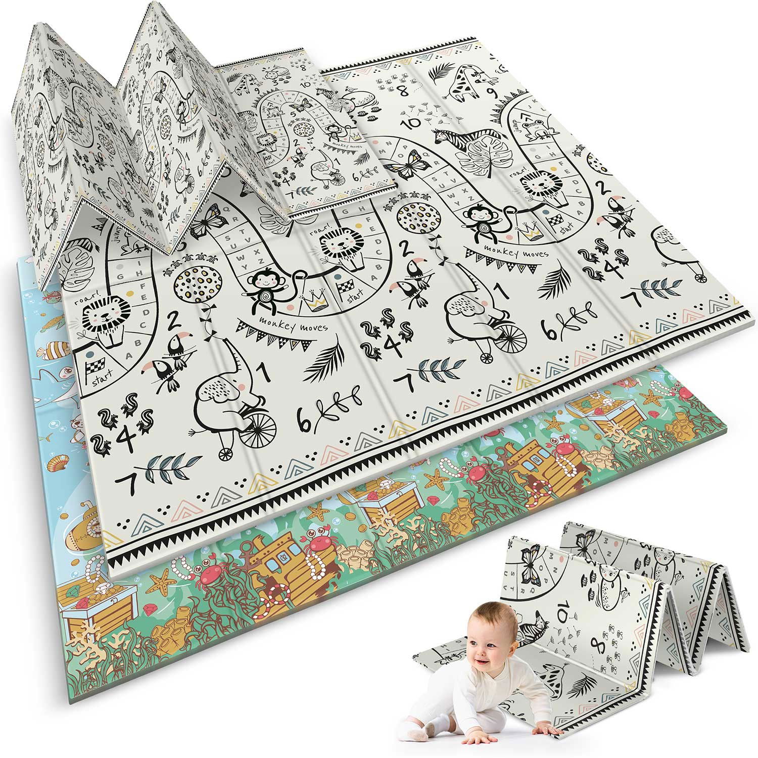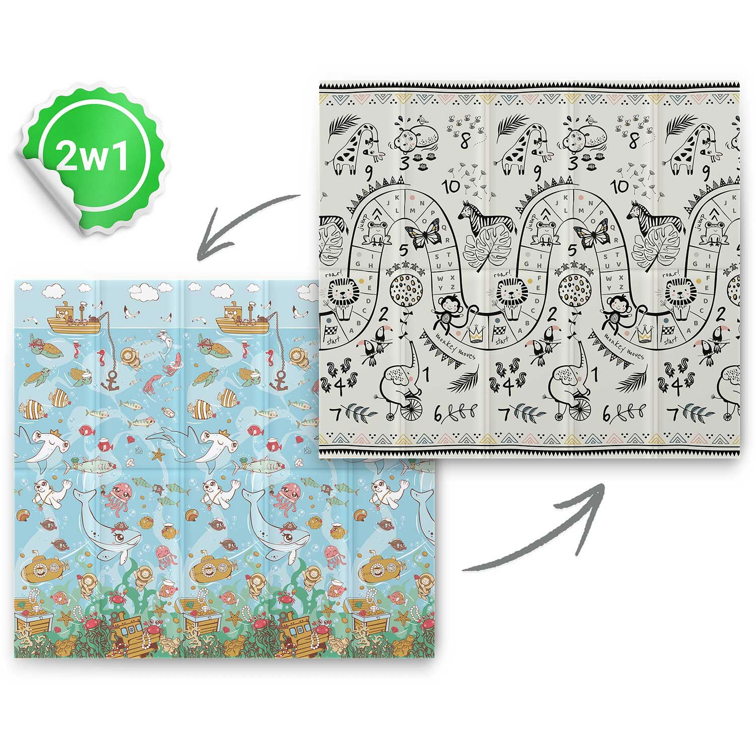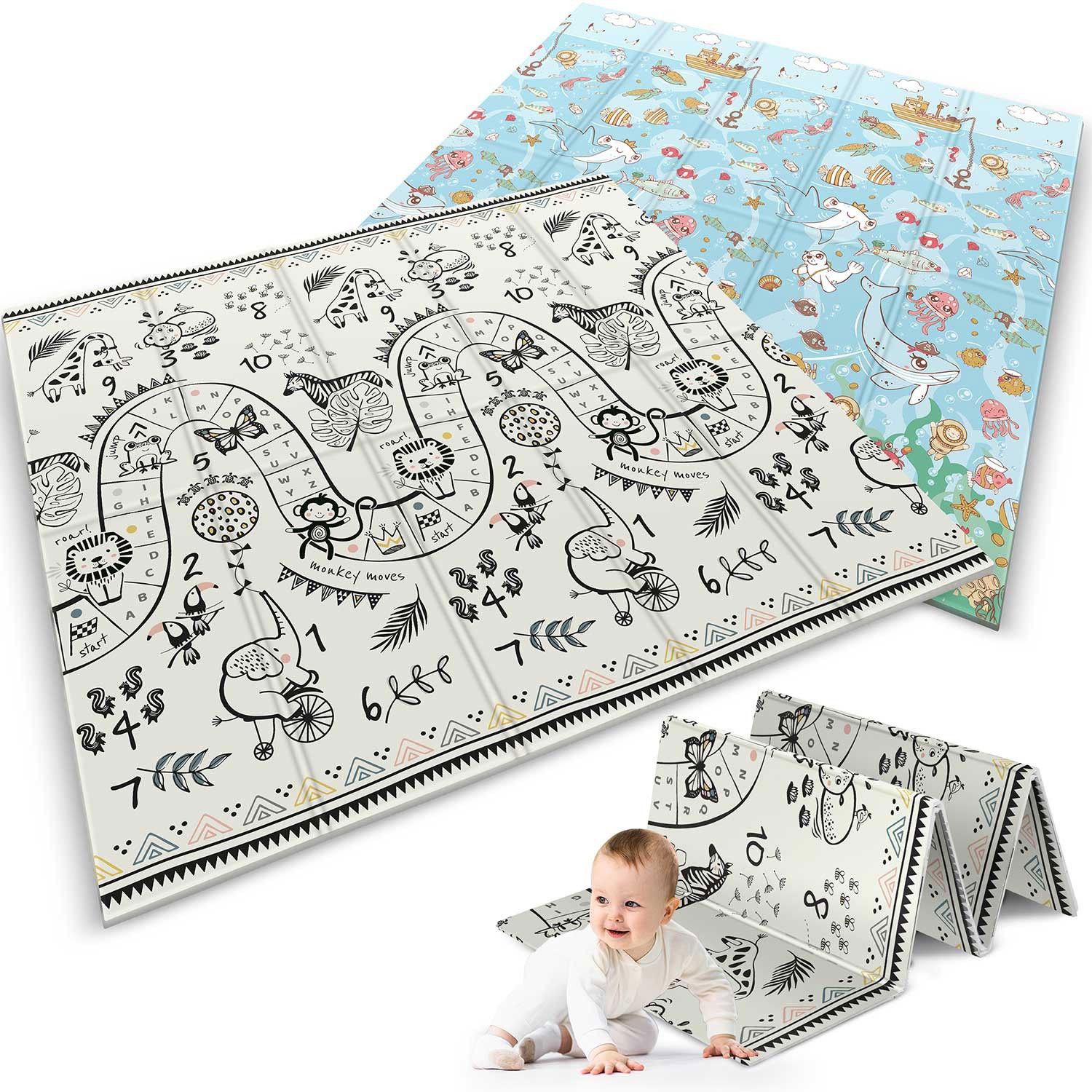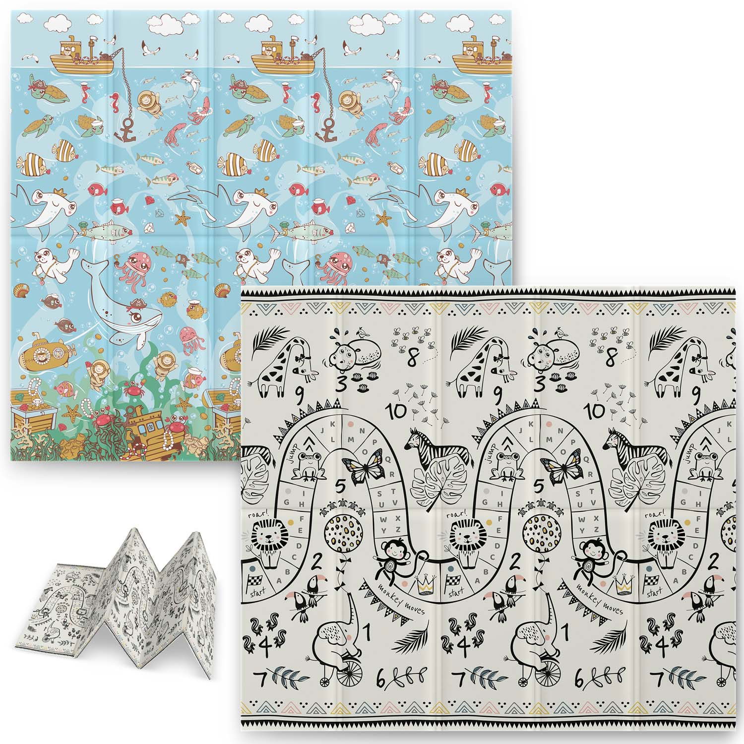 Mata piankowa edukacyjna składana 200 x 180 x 1 cm Nukido NK-340 ocean-safari