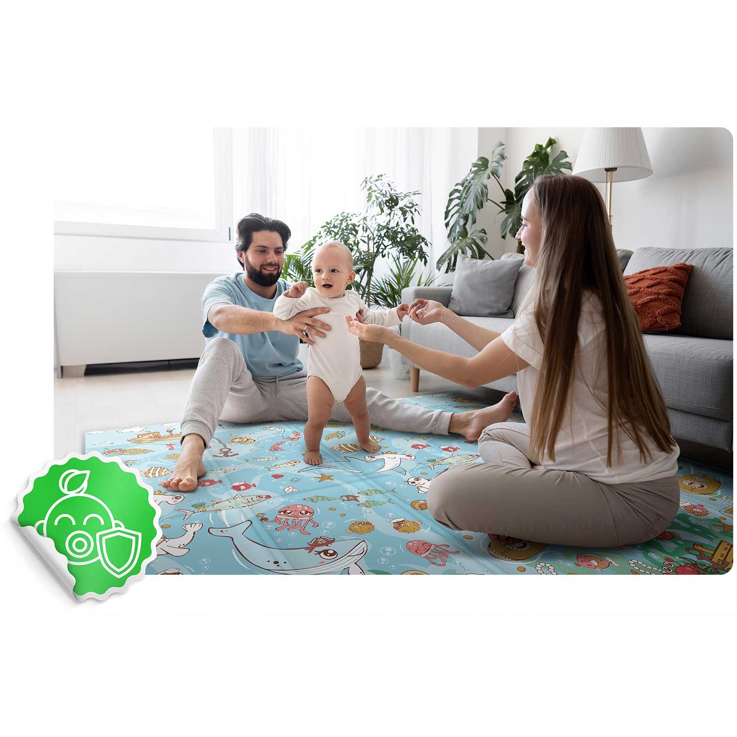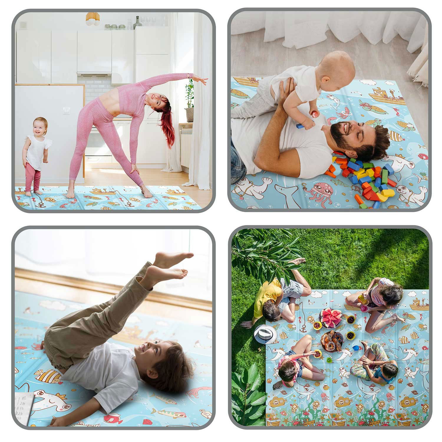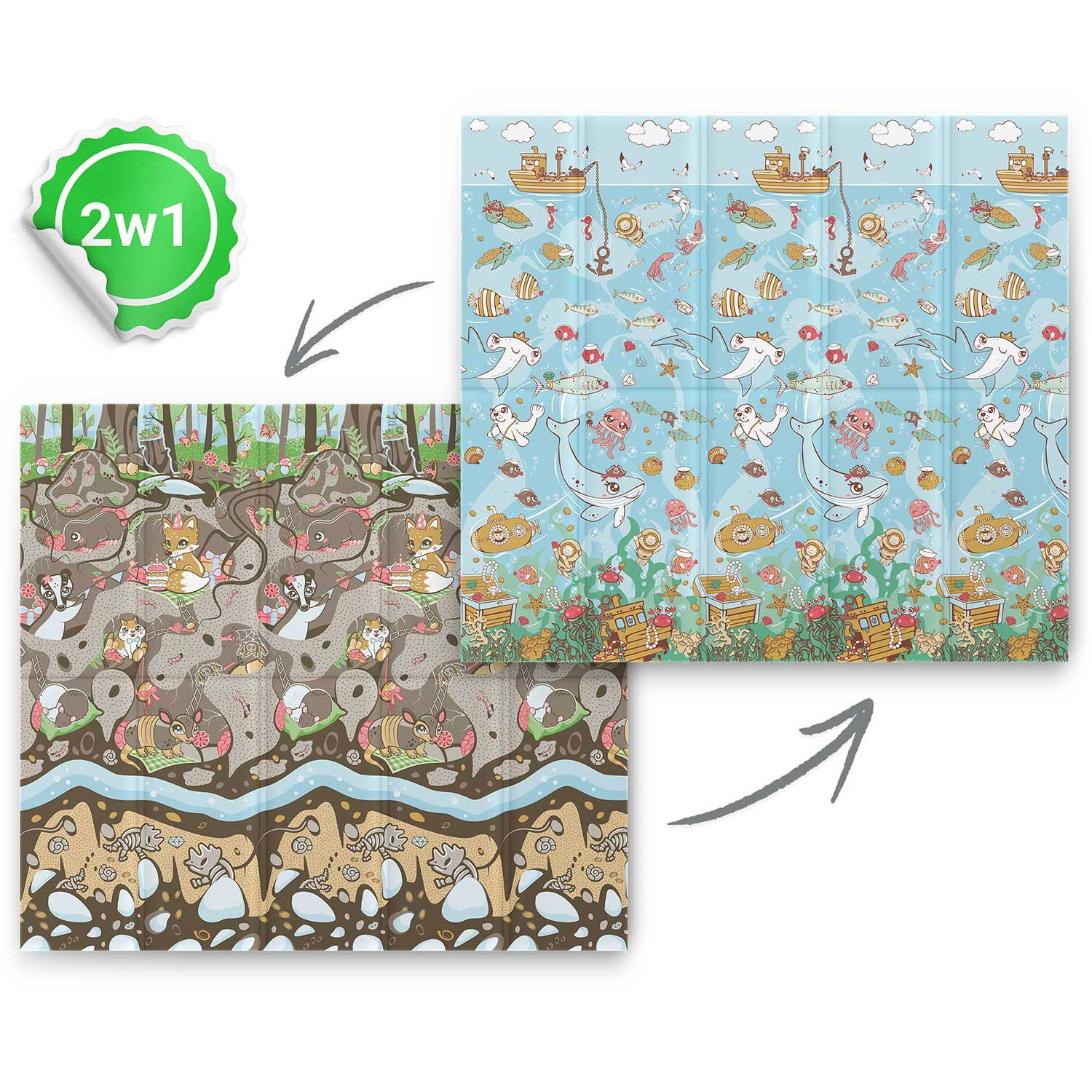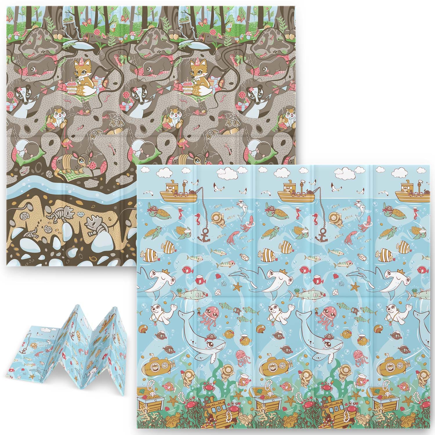 Mata piankowa edukacyjna składana 200 x 180 x 1 cm Nukido NK-340 ocean-ziemia
