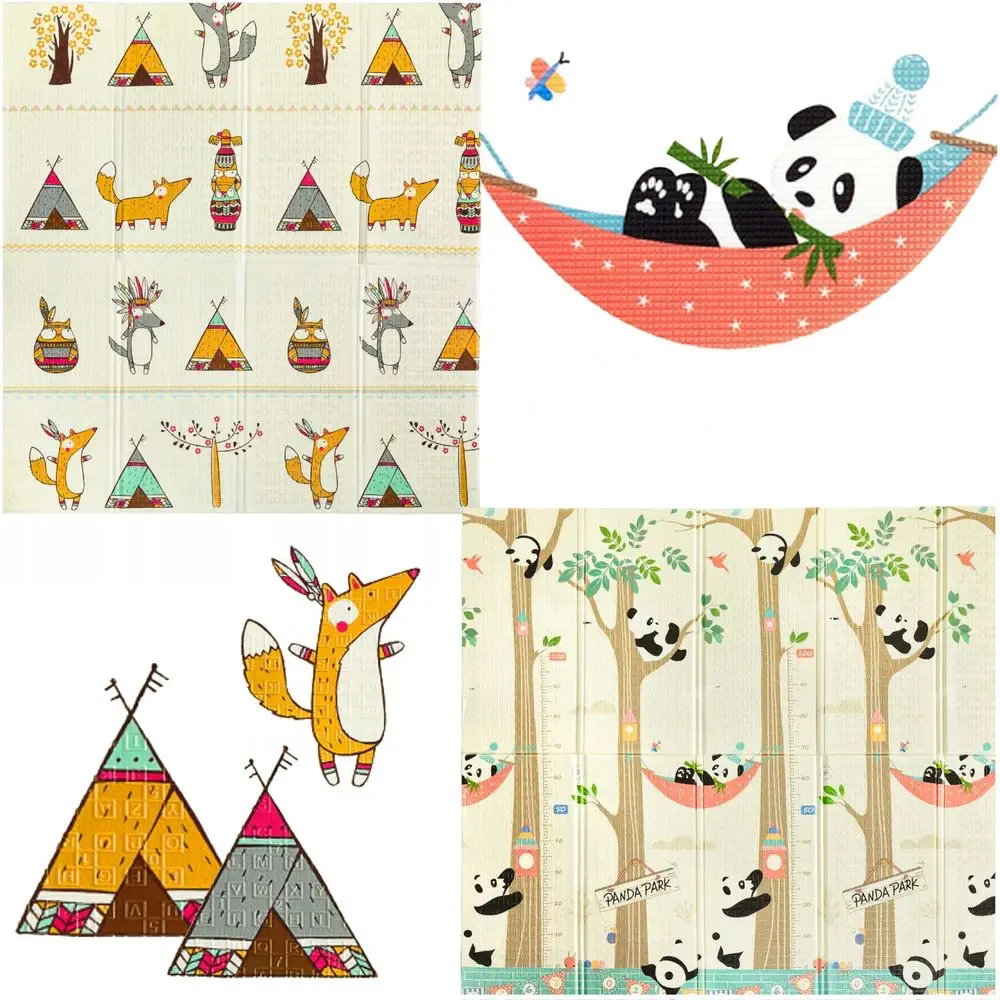 Nasza piankowa mata dla dzieci jest dwustronna - możesz swobodnie zamieniać ją stronami - na każdej znajduje się wyjątkowy wzór. Strona "Lis Indianin" ma za zadanie rozwinąć wyobraźnie dziecka i zachęcić je do zabawy, podczas gdy strona "Słodkie Pandy" zawiera też elementy edukacyjne - cyfry i litery, ma też wprowadzić malucha w spokojny nastrój ilustracjami wypoczywających pand.