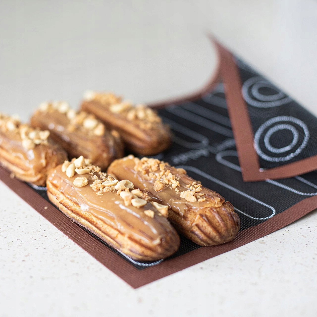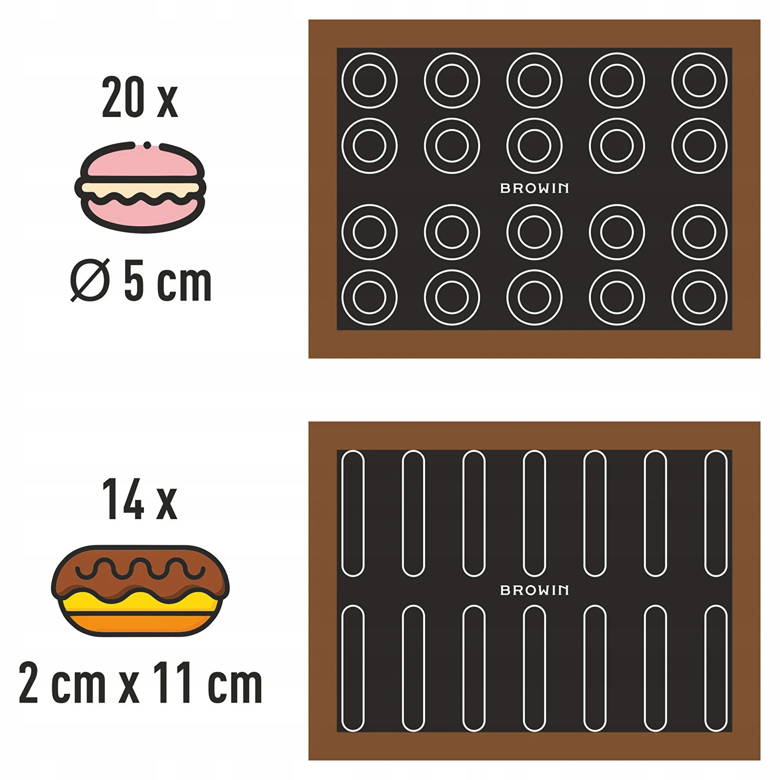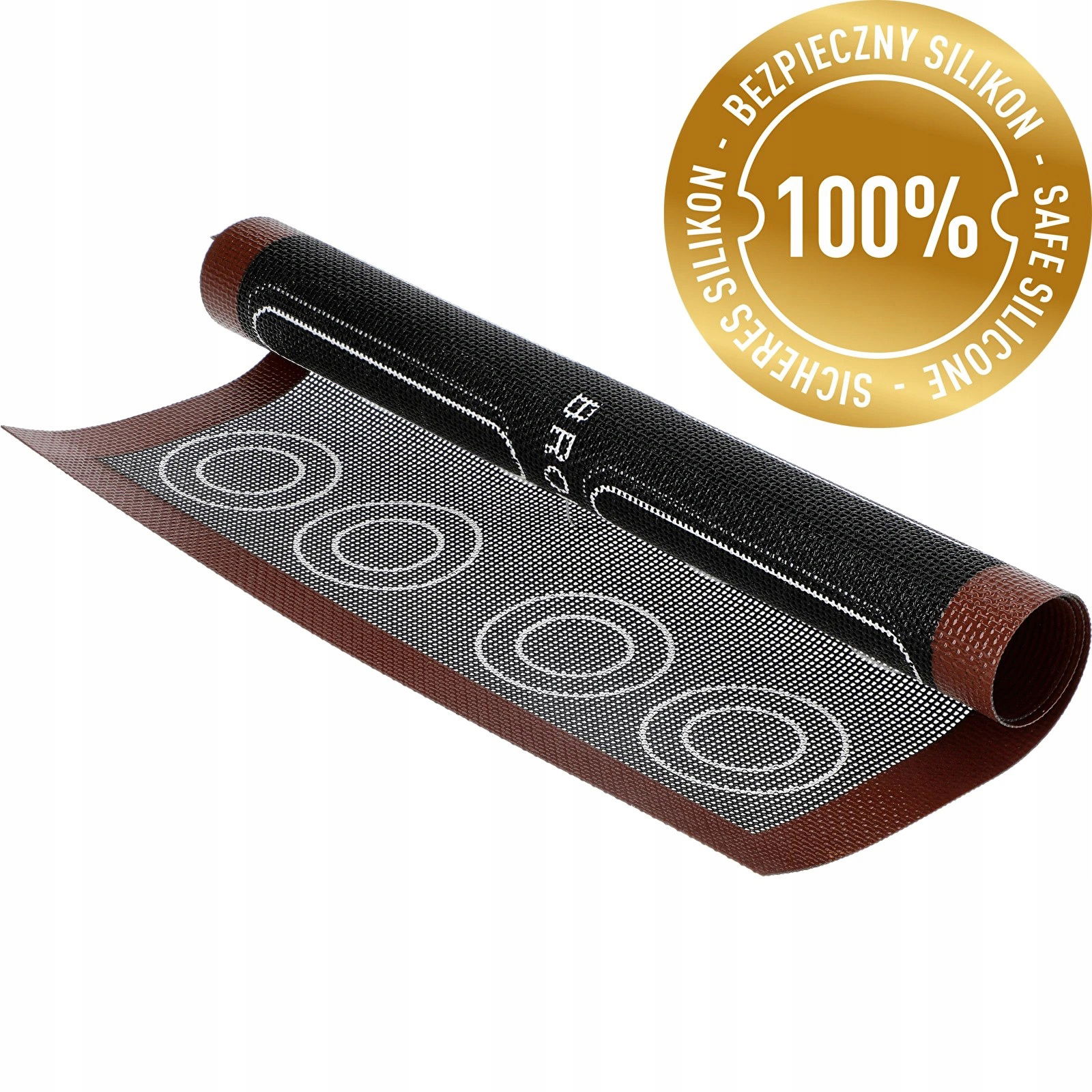 Odporna - mata jest niezwykle wytrzymała, zarówno na ewentualne uszkodzenia mechaniczne, zabrudzenia, jak i na ekstremalne temperatury, od ujemnych, po te wysokie - aż do 230°C (!). Elastyczna i kompaktowa - wysoka elastyczność sprawia, że matę możesz zwinąć w ciasny rulon i wygodnie przechowywać nawet w zapełnionej już kuchennymi akcesoriami szufladzie czy szafce. Higieniczna - wykorzystanie silikonu zapewnia macie odporność na bakterie i pleśń, a do jej dokładnego wyczyszczenia wystarczy jedynie ciepła woda z mydłem. Matę możesz także myć w zmywarce. Jedna mata, dwa praktyczne szablony - nadruki umieszczone po dwóch stronach maty ułatwią Ci odmierzenie idealnej porcji ciasta dla popularnych wypieków - makaroników i eklerek. Ażurowa konstrukcja - mata zaprojektowana została w taki sposób, aby zapewnić odpowiednią cyrkulację powietrza, również w przestrzeni pod wypiekami, dzięki czemu zawsze osiągniesz idealny, równomierny efekt pieczenia. Na długo i oszczędnie - wielorazowa mata do pieczenia zamiast jednorazowego papieru, to mniejsza ilość wytwarzanych śmieci i w sumie także mniejsze wydatki - działaj ekologicznie i oszczędzaj.