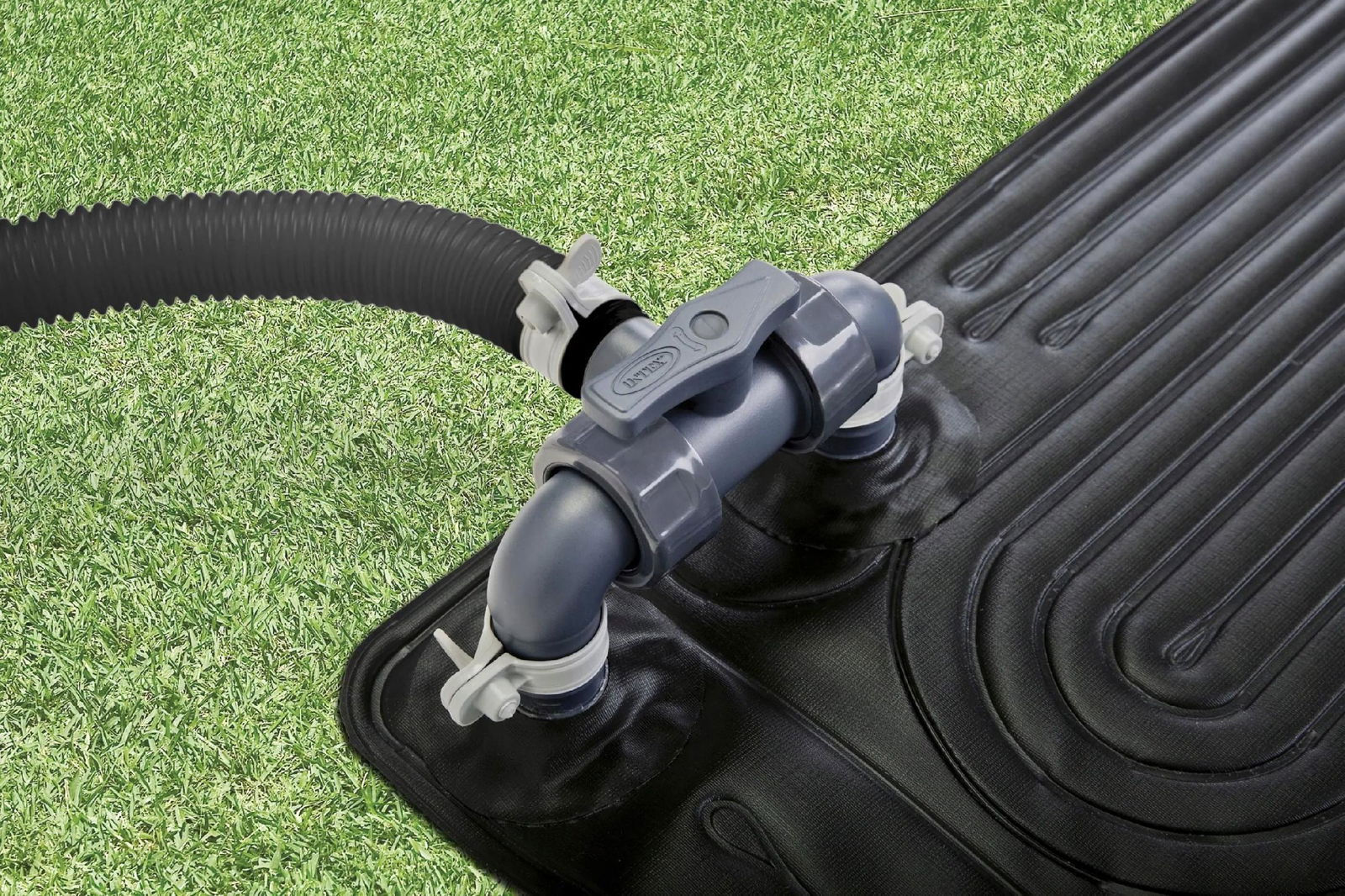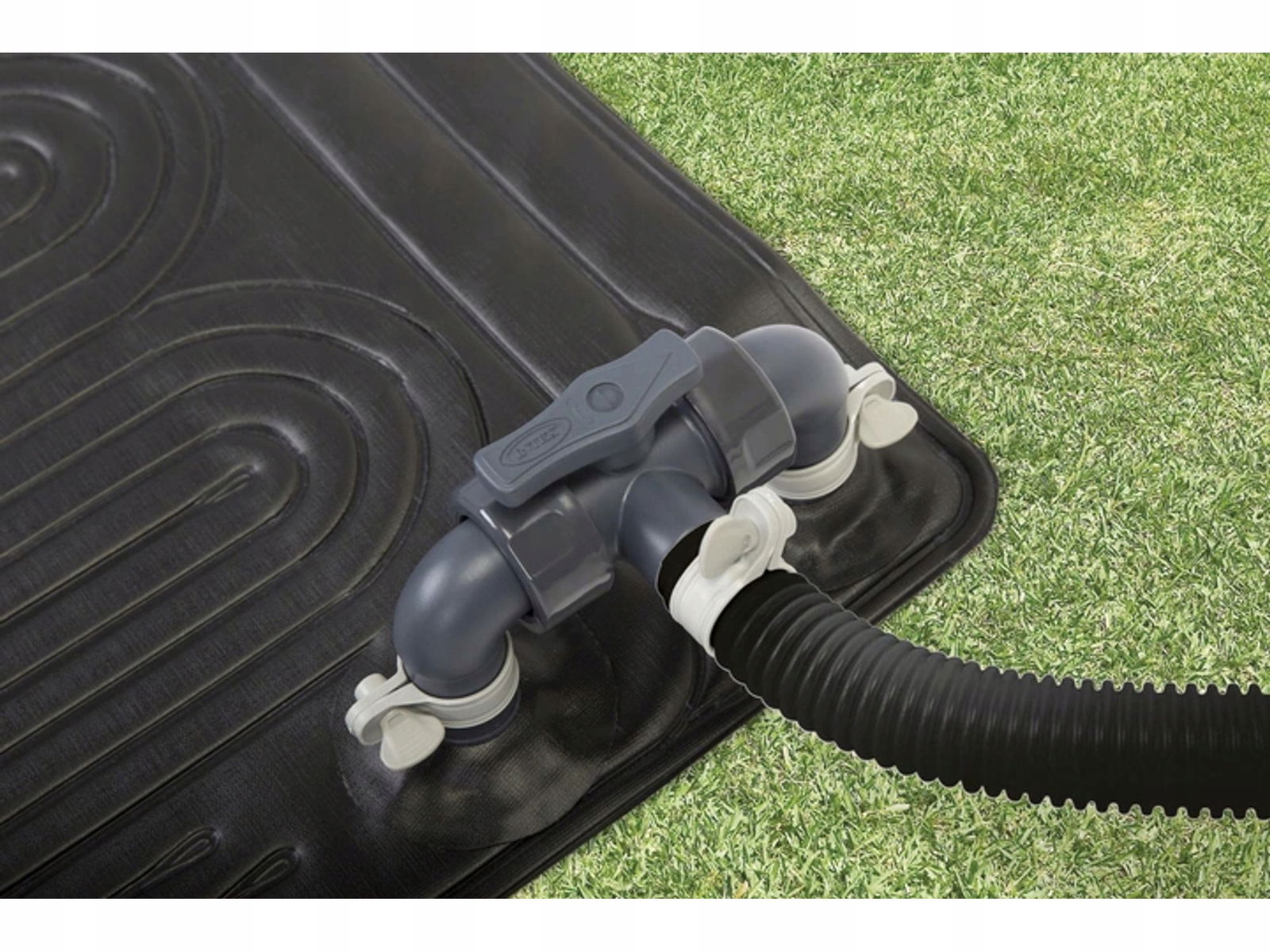 Możesz umieścić panel słoneczny na poziomym podłożu lub lekko pochylony w kierunku południowym, aby jak najlepiej wykorzystać światło słoneczne. Działanie promieni słonecznych podgrzewa wodę w podgrzewaczu, a tym samym pomaga podnieść temperaturę wody w basenie.