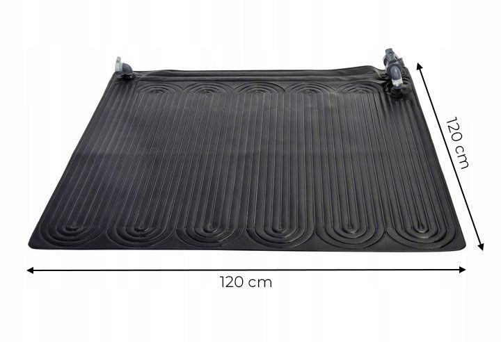 - Mata ma wymiary 120x120cm i jej ważną zaletą jest możliwość podłączenia nawet kilku mat w jeden system. W ten sposób, przy słonecznej pogodzie, możesz podgrzać wodę w swoim basenie nawet o kilkanaście stopni i to zupełnie za darmo.