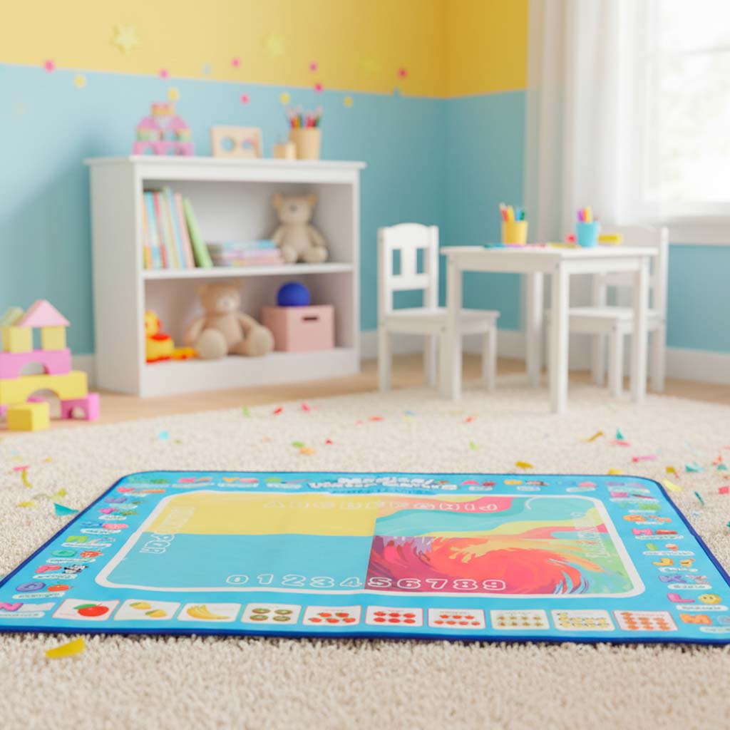 IDEALNA DLA NAJMŁODSZYCH ARTYSTÓW - Mata jest lekka, bezpieczna i wielokrotnego użytku, dzięki czemu doskonale sprawdzi się w domu, przedszkolu czy podczas podróży. To wyjątkowy prezent, który łączy naukę z zabawą, rozwija umiejętności plastyczne i dostarcza mnóstwo radości – bez żadnego bałaganu!