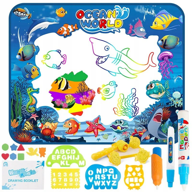 Magiczna mata wodna do malowania to świetna zabawa da dzieci, która nigdy się nie kończy! Nasz zestaw zapewni rozrywkę maluchom na długie godziny. Do malowania na naszej magicznej macie wystarczy czysta woda, nie musisz więc obawiać się żadnych plam po pisakach, farbach itp.