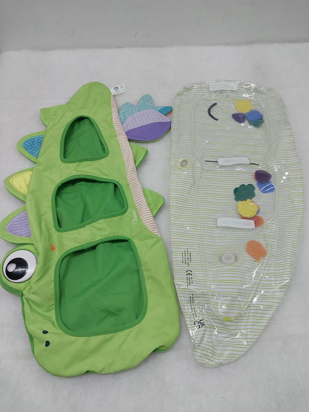 Mata Krokodyl Chicco to zabawka ewolucyjna, bogata w bodźce dotykowe dzięki korpusowi wypełnionemu wodą i napompowanym powietrzem oraz różnym materiałom