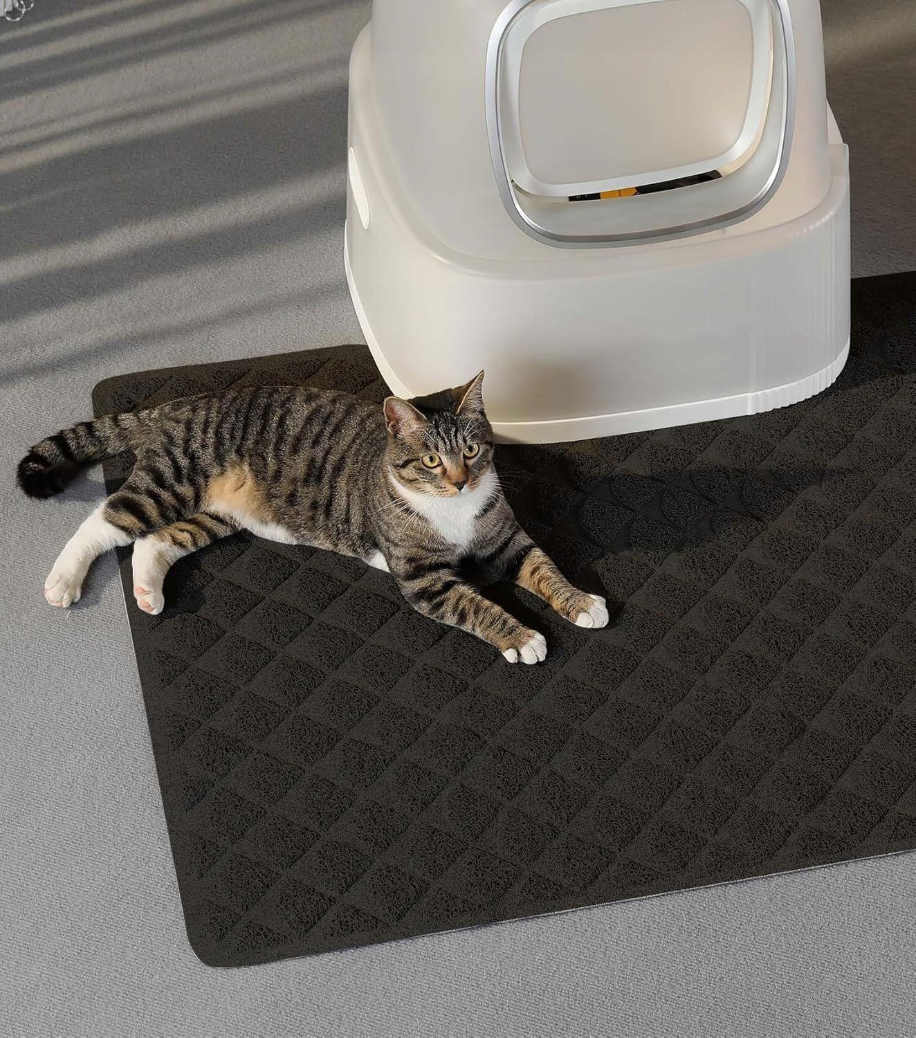 - Idealny rozmiar: 119 x 89 cm czarna mata do żwirku dla kota została zaprojektowana tak, aby mogła utrzymać ściółkę na macie dla kota i utrzymać podłogę w czystości.