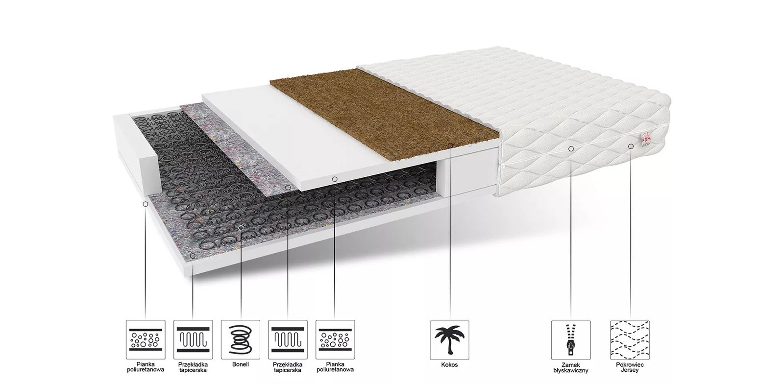 MATERAC BONELLOWY SIENA - 90 X 200 X 16 H3 H4 SPREŻYNOWY Z KOKOSEM