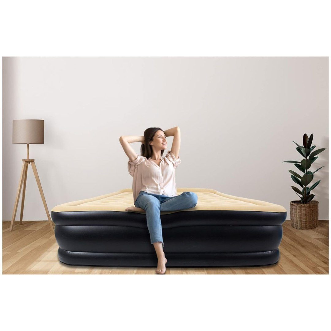 Materac dmuchany AVENLI Queen High Raised jest zaprojektowany z myślą o codziennym użytkowaniu. Charakteryzuje się neutralną kolorystyką oraz antypoślizgową powierzchnią, co sprawia, że jest on nie tylko atrakcyjny wizualnie, ale także bezpieczny. Integracja pompy elektrycznej pozwala na szybką i wygodną obsługę — wystarczy kilka chwil, a materac będzie gotowy do użytku.