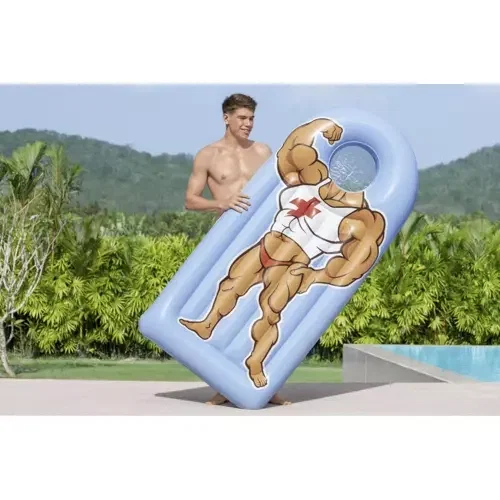- PRZEŹROCZYSTE OKIENKO – dzięki temu, że materac do pływania wyposażony został w przeźroczyste okienko, które równocześnie jest zagłówkiem pozwala na komfortowy wypoczynek w basenie.