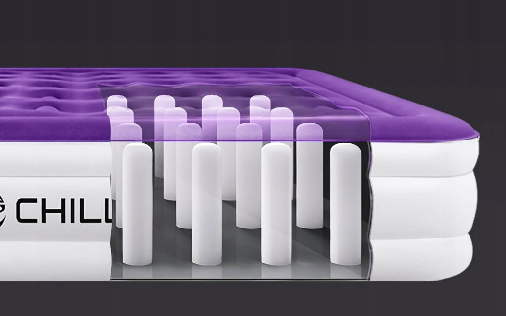 - ✴️Szybki montaż: materac dmuchany CHILLSUN posiada zintegrowaną pompkę, która pompuje i spuszcza powietrze z materaca w zaledwie 3 minuty. Ułatwia to regulację twardości – idealne rozwiązanie dla szybkiego zapewnienia komfortu w każdym miejscu.