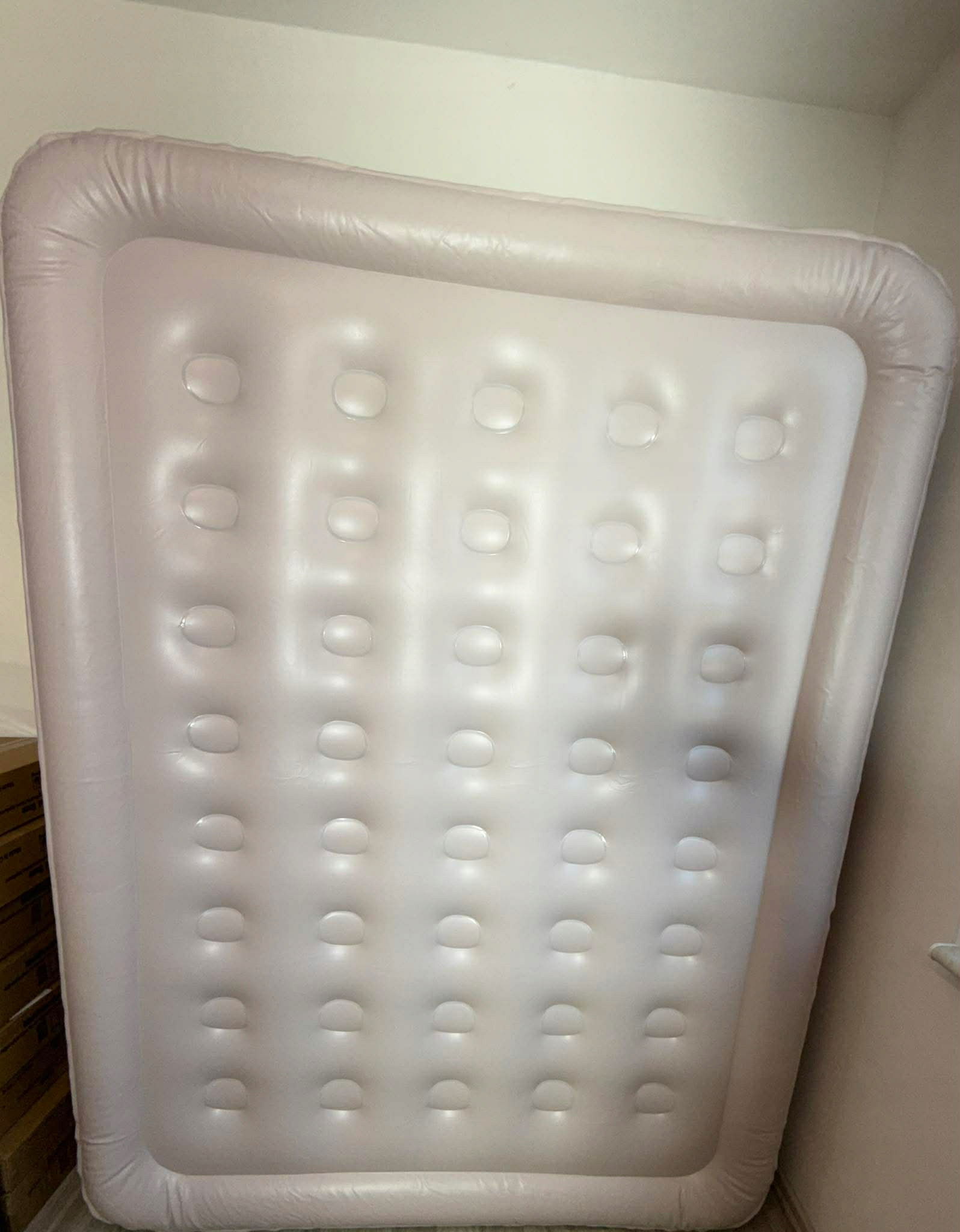 - ✴️Praktyczna konstrukcja: wysokość ułatwia wchodzenie i wychodzenie, krawędź utrzymuje przedmioty na materacu, a antypoślizgowy spód zapewnia stabilność. Uwaga: PVC może początkowo się rozciągać – w razie potrzeby pompuj. Akcesoria: łatka naprawcza, torba, instrukcja.