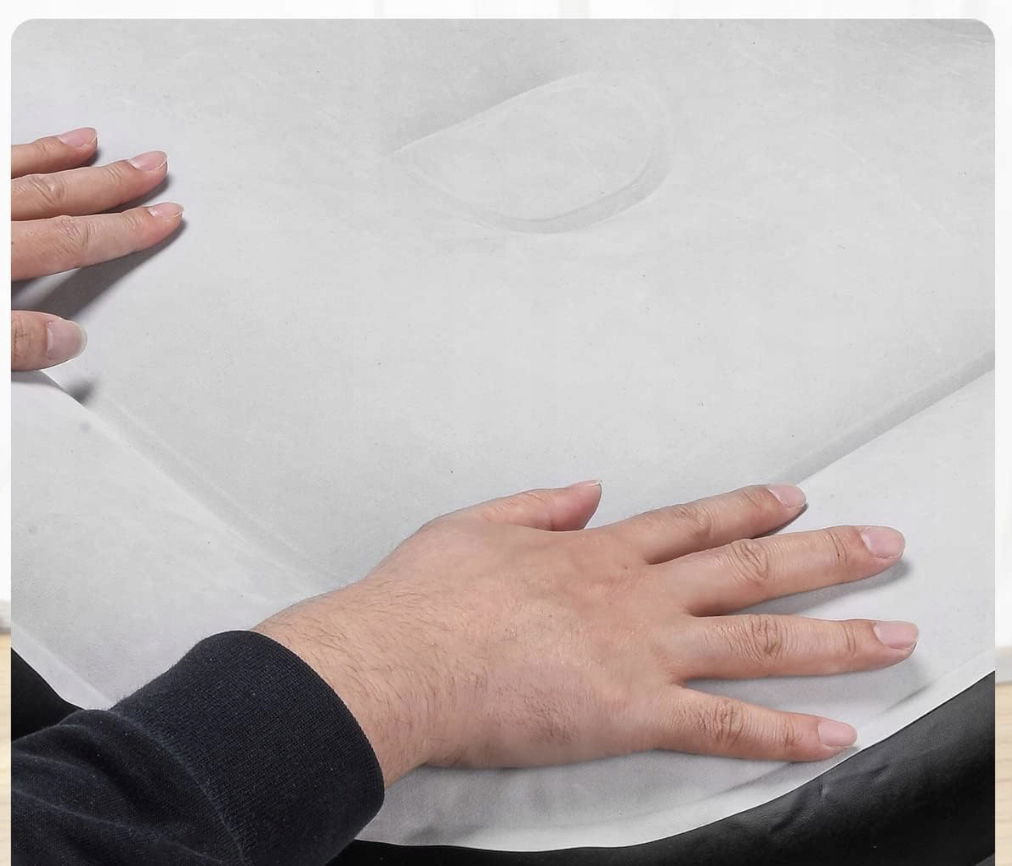 Materac wykonany z wielowarstwowego PVC odpornego na przebicia, z antypoślizgowym spodem, dzięki czemu nie przesuwa się na panelach czy płytkach. Wysokość 46 cm ułatwia wstawanie, a podwyższone krawędzie zwiększają komfort i bezpieczeństwo.