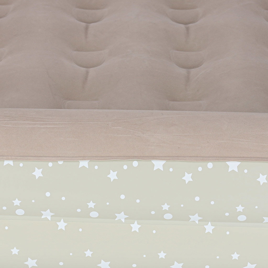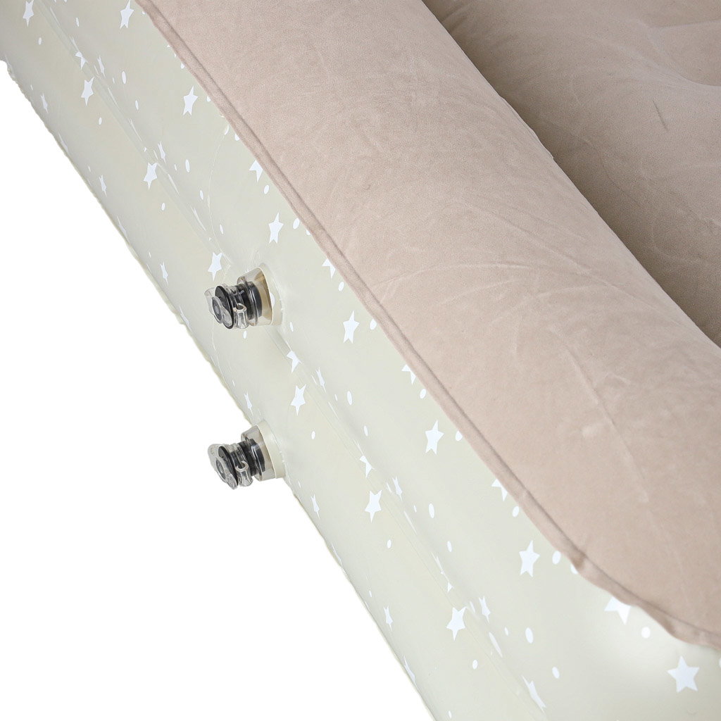 ŁATWE ROZKŁADANIE I OBSŁUGA - Szybkie pompowanie jest możliwe dzięki dołączonej pompce oraz praktycznym zaworom, które ułatwiają napełnianie powietrzem i zapobiegają jego nagłemu uchodzeniu. Dzięki temu przygotowanie łóżeczka do użycia zajmuje tylko chwilę. Prosta obsługa sprawia, że produkt jest wygodny w codziennym użytkowaniu i nie sprawia trudności podczas przygotowania miejsca do snu.