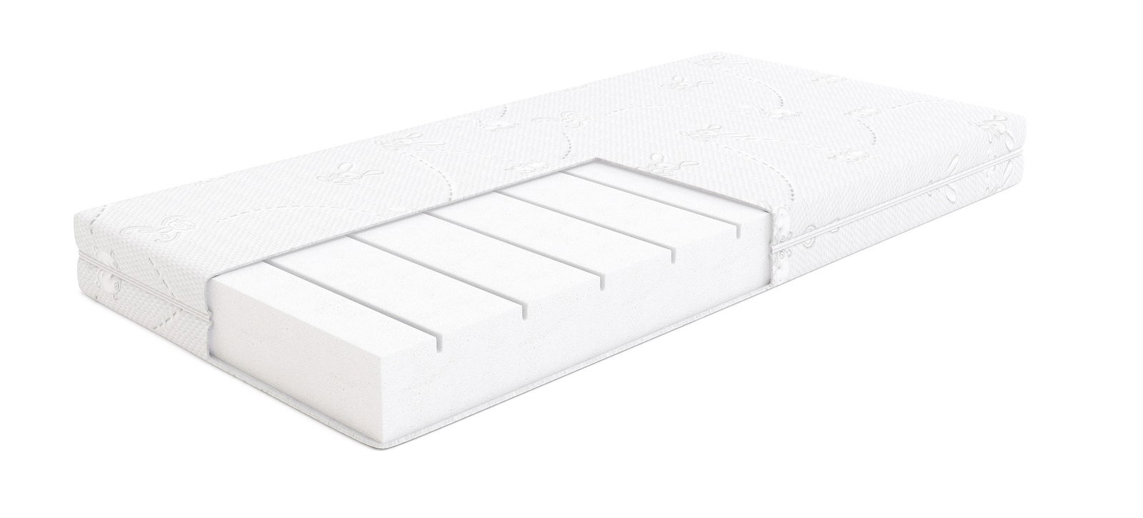 Dobranocka to ceniony materac dla niemowląt, odpowiedni już od pierwszych dni życia. Jego wkład powstał z elastycznej i wyjątkowo przewiewnej pianki Flexifoam, której porowata struktura oraz specjalne nacięcia zapewniają stałą cyrkulację powietrza. Dzięki temu materac „oddycha”, pozostaje świeży i utrzymuje swoje kluczowe właściwości przez cały okres użytkowania.