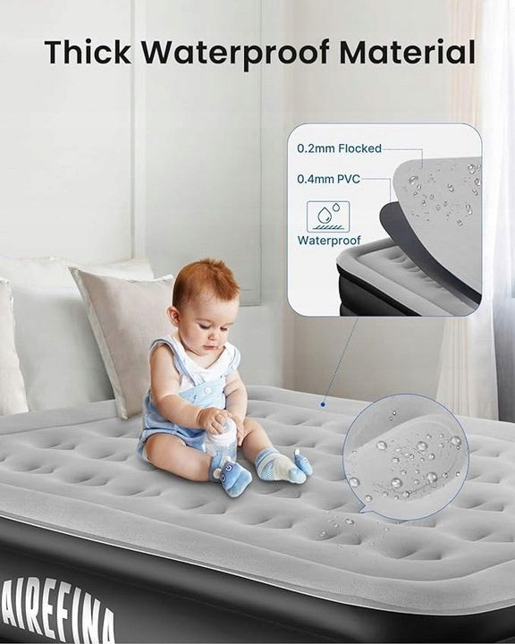 Podwójna powierzchnia dmuchanego łóżka Airefina z wykorzystaniem wysokiej jakości super miękkiego floku kryształowego, przyjazna dla skóry i delikatna, wodoodporna i odporna na zużycie.