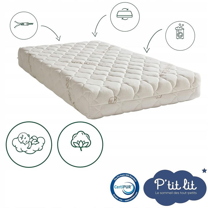 Materac P'TIT LIT posiada zdejmowany pokrowiec ułatwiający utrzymanie idealnej czystości.