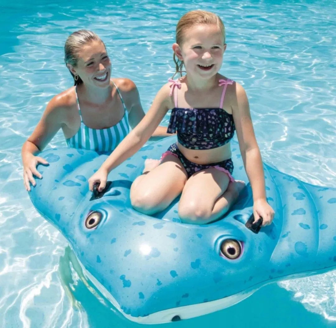 - Dmuchany materac w kształcie płaszczki marki INTEX to idealne rozwiązanie na letni wypoczynek nad wodą.
