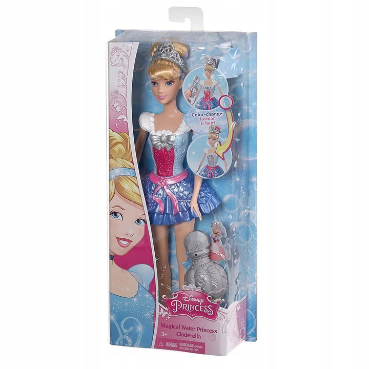Napełnij dołączoną do zestawu psikawkę i ściśnij, a kolor części topu lalki Kopciuszka magicznie się zmieni na Twoich oczach! Pryśnij wodą na jaskrawe pasemko włosów lalki, a zobaczysz, że ono też zmieni kolor! Gdy księżniczka wyschnie, powróci do swoich pierwotnych barw i dziewczynki będą mogły od nowa zacząć zabawę w przemianę!