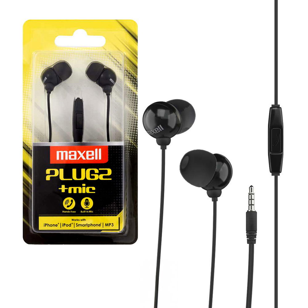 Maxell słuchawki przewodowe douszne Plugz + mikrofon Jack 3,5mm 1.24m czarny