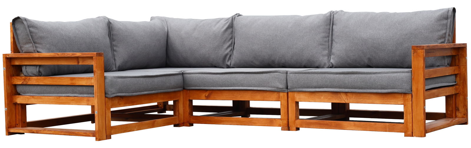** Solidna konstrukcja: Meble wykonane są z trwałego drewna sosnowego, zabezpieczonego lakierem bejcowym, który zwiększa odporność na działanie czynników atmosferycznych – idealne rozwiązanie do użytkowania na zewnątrz.