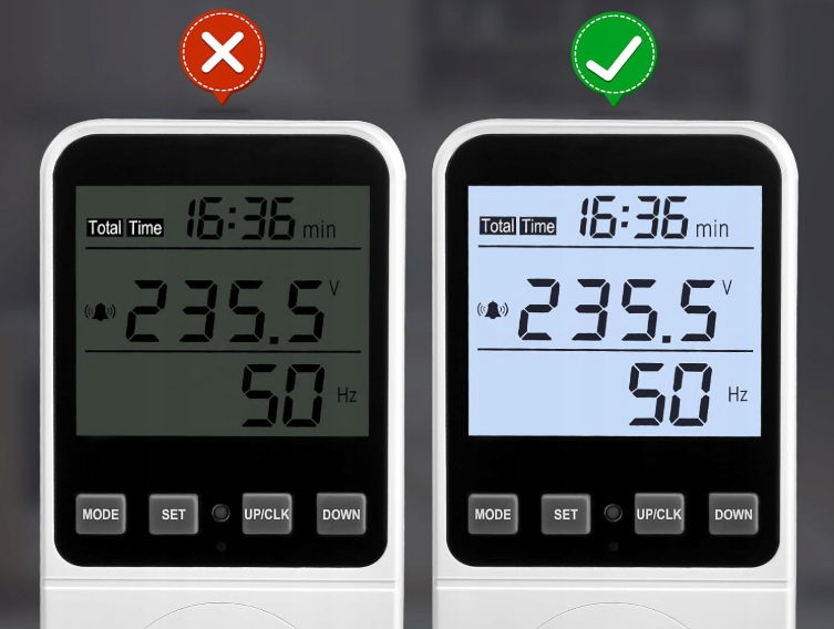 - ✴️ Regulowany czas podświetlenia-5 trybów podświetlenia: 10 minut, 1 godzina, 4 godziny, 8 godzin lub całkowite wyłączenie; ustawienia zmieniane za pomocą przycisków.