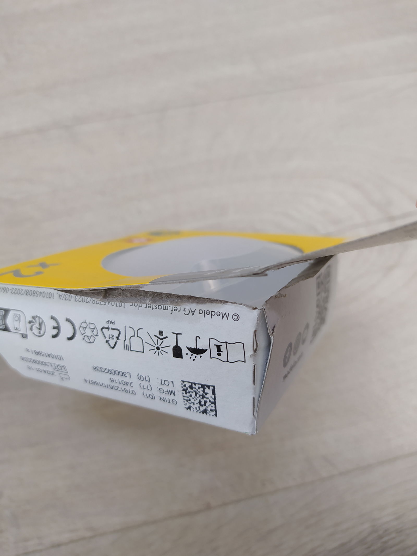 Opakowanie kartonowe jest uszkodzone, ale nieotwierane.