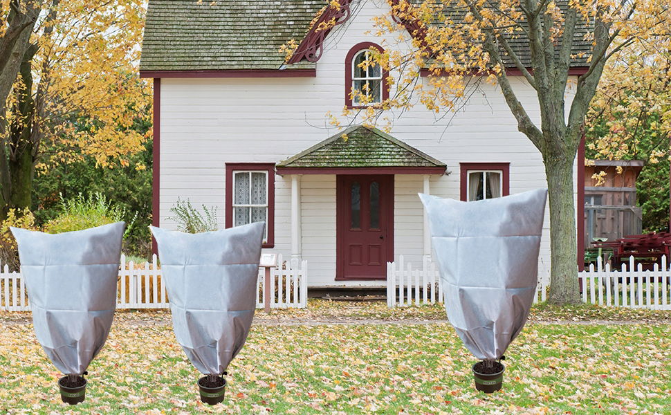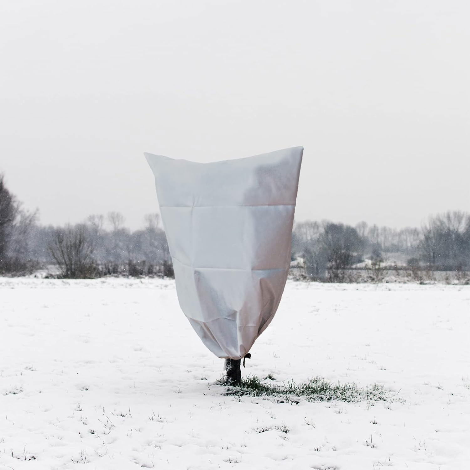 Te koce przeciwmrozowe chronią drzewa i krzewy przed wietrzną pogodą, mrozem i zamarzaniem, zatrzymując ciepło jak koc. Osłony są łatwe w użyciu: wystarczy przykryć roślinę, zamknąć woreczek i zaciśnij dolny sznurek ściągający, aby zabezpieczyć pokrowiec przed wiatrem. Są lekkie i łatwe do przechowywania, co pozwala na wielokrotne użycie. Zapewniają ochronę przed śniegiem, mrozem, słońcem, wiatrem oraz owadami.