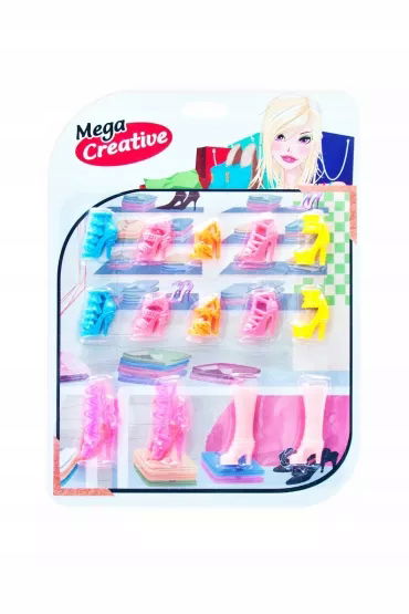 Każda Lalka, na wzór prawdziwego człowieka, musi posiadać buty. Zestaw MEGA CREATIVE zadowoli nawet najbardziej wymagające Lalki i dzieci. W zestawie znajduje się 7 eleganckich par butów, idealnych na wielkie wyjścia, jak i na co dzień. Całość wykonana z plastiku.