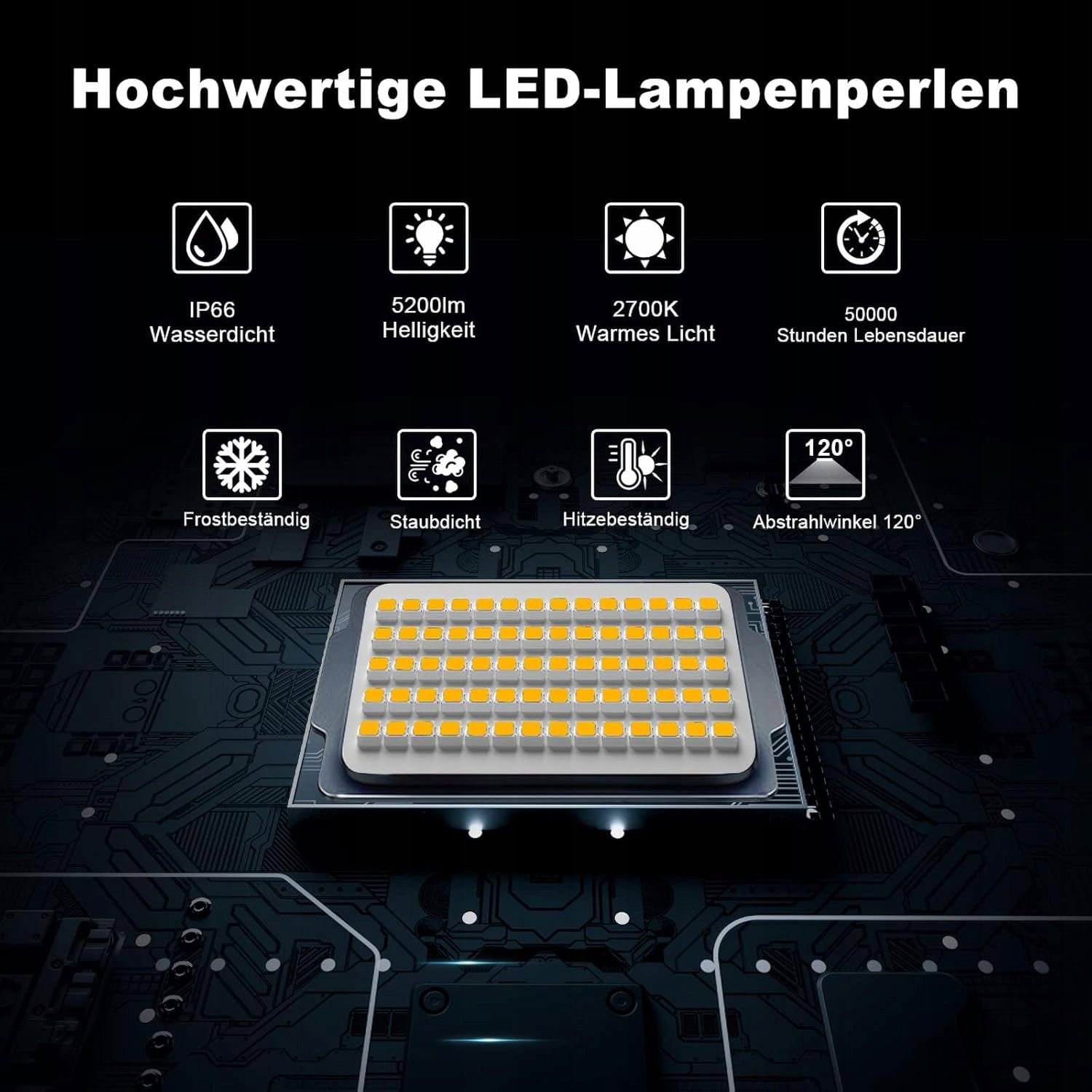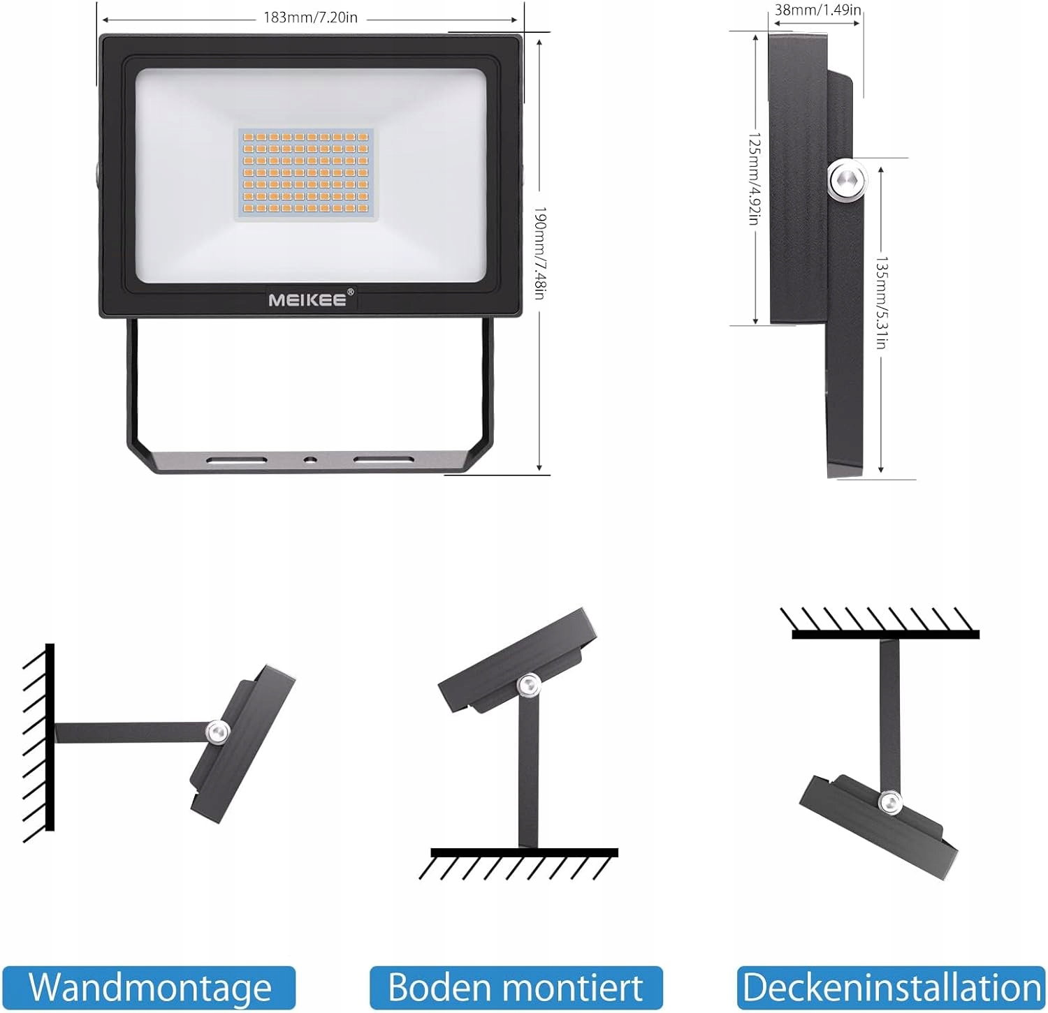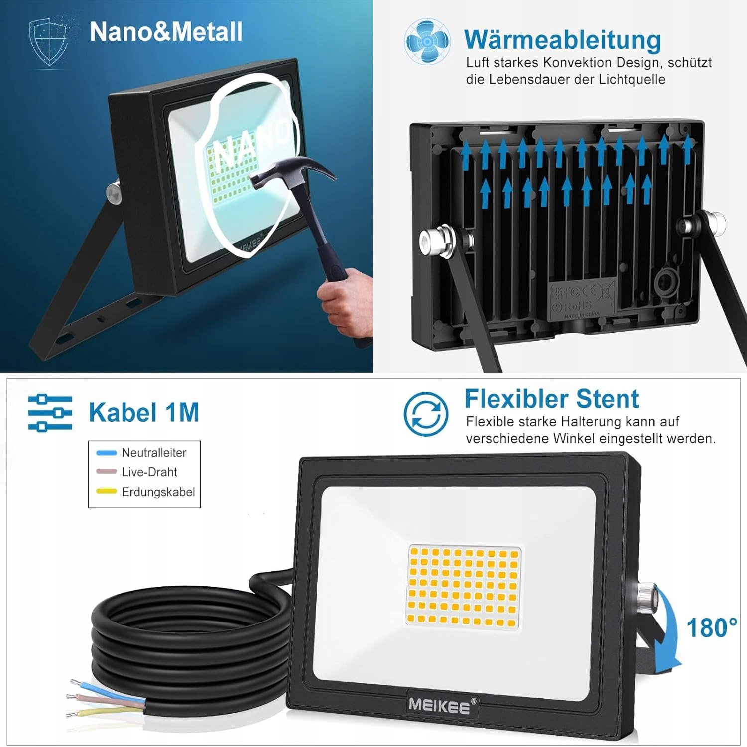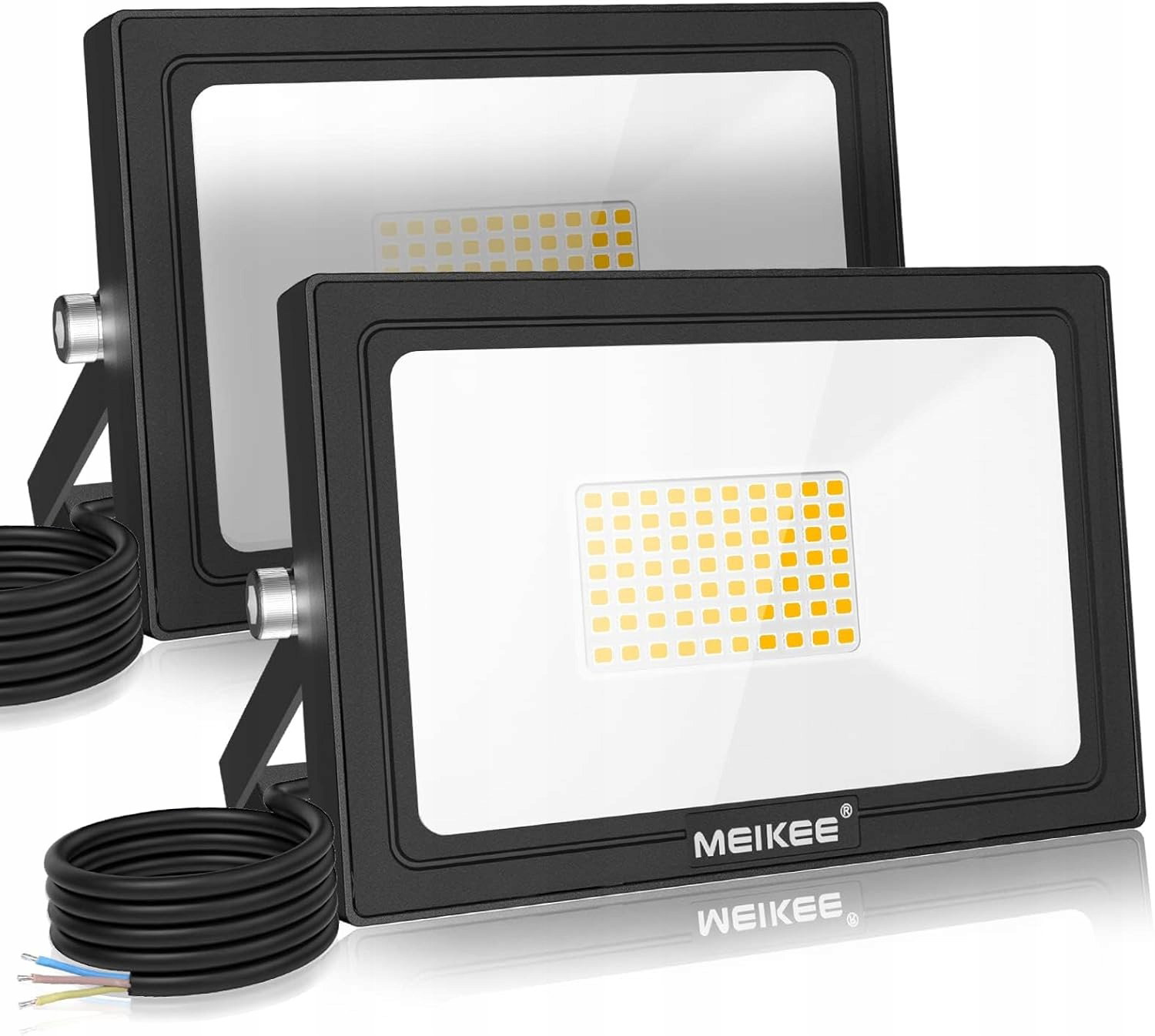 JASNE OŚWIETLENIE - Wyposażone w 70 diod LED SMD, które mogą wytwarzać super jasność do 5200 lm, idealny zamiennik tradycyjnych reflektorów halogenowych o mocy 480 W, oszczędzając ponad 85% rachunku za prąd. Maska projektora LED wykonana jest z materiału nanotechnologicznego, który może osiągnąć lepszą transmisję światła. W porównaniu z innymi reflektorami LED o tej samej mocy, jasność zewnętrznego reflektora MEIKEE LED można zwiększyć o 30%.