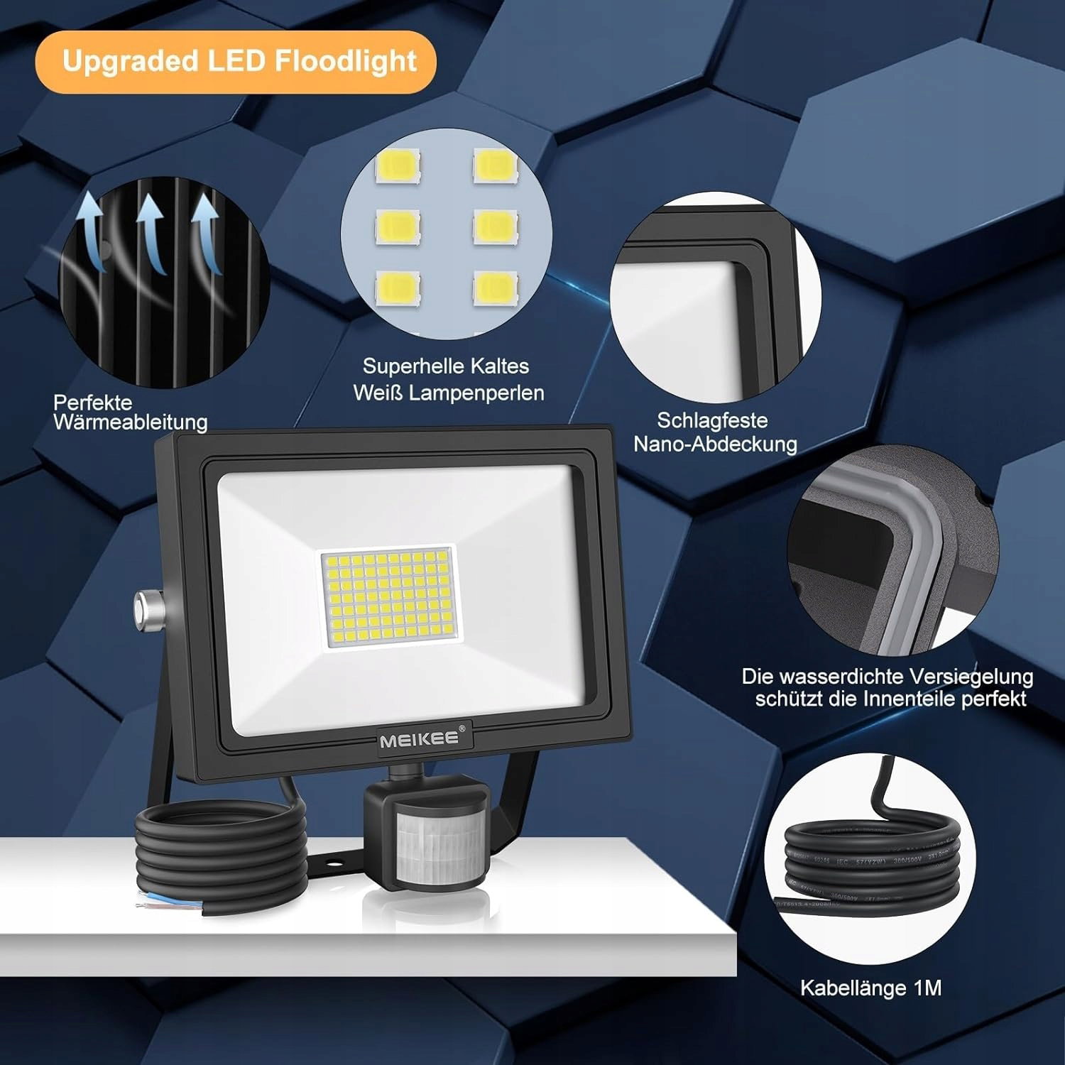 【Wodoszczelność IP66】Reflektor LED MEIKEE ma klasę ochrony IP66, która może być bardziej wodoodporna i pyłoszczelna. Dzięki zaawansowanej technologii ultradźwiękowego formowania wtryskowego głowica czujnika jest całkowicie uszczelniona i chroniona, dzięki czemu reflektor LED jest całkowicie oddzielony od środowiska zewnętrznego. Niezależnie od pogody zewnętrznej, reflektory LED mogą pracować normalnie przez cały rok. Idealny do oświetlenia zewnętrznego w ogrodach, garażach, tarasach i innych miejscach.