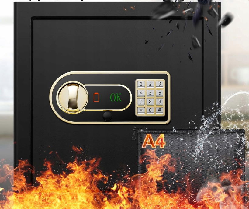 - ✴️Sejf 40 l (35 x 33 x 36 cm/13,77 x 12,99 x 14,17 cala), ognioodporna i wodoodporna torba na dokumenty (34 x 24 cm/13,38 x 9,44 cala), dwa klucze awaryjne, cztery śruby rozporowe, zewnętrzny schowek na baterie, matę i dwie instrukcje obsługi.