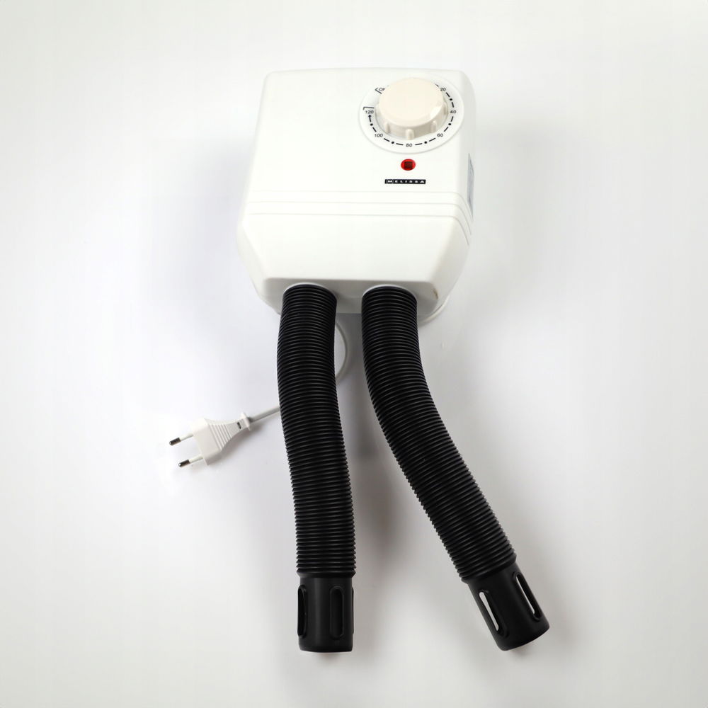 Suszarka do butów z dwoma wężami marki Melissa to innowacyjne rozwiązanie, które szybko i efektywnie wysuszy mokre buty, eliminując nieprzyjemne zapachy i zapobiegając powstawaniu bakterii. Idealna dla rodzin z dziećmi oraz osób aktywnych, bez względu na warunki pogodowe, ta suszarka o mocy 250W gwarantuje szybkie wysychanie jednej pary butów. Dzięki regulowanemu uchwytowi ściennemu urządzenie można łatwo zawiesić w dogodnym miejscu, a elastyczne węże pozwalają na dopasowanie do różnych rodzajów obuwia.