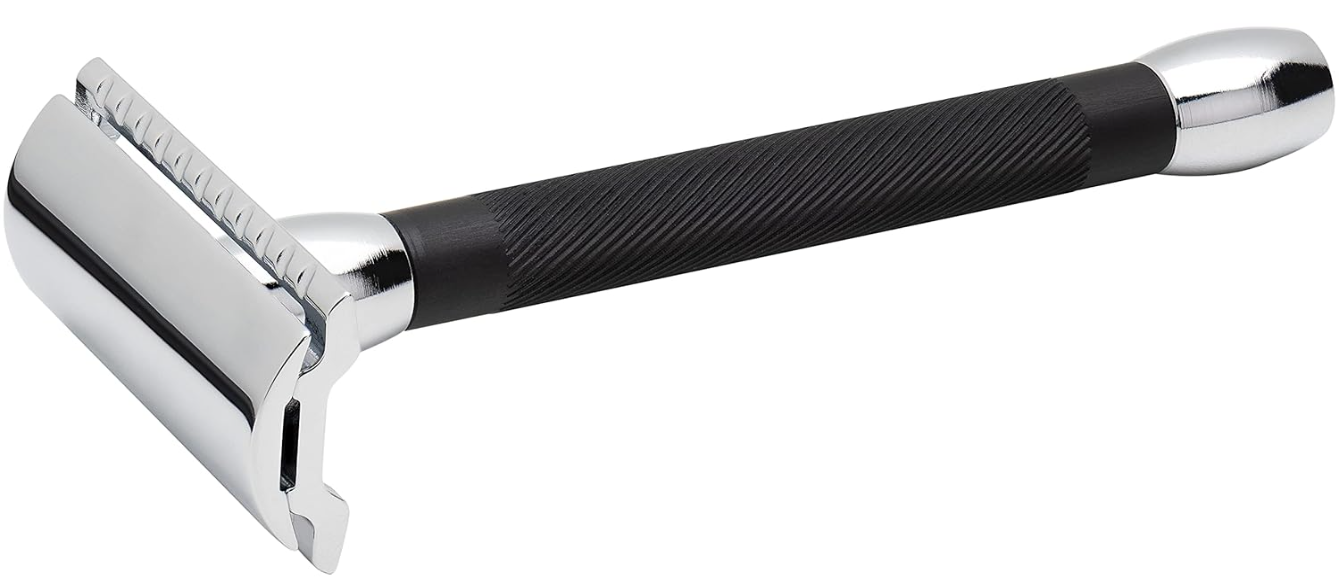 Maszynka do golenia MERKUR 20C to prawdziwy dżentelmen w naszej ofercie. Elegancko ubrany w dwuczęściowy garnitur wykonany z czarnego aluminium i błyszczącego chromu, zachwyca eleganckim wyglądem. Długi uchwyt zapewnia wygodę, a ciężar zapewnia wyraźną informację zwrotną. Zamknięty grzebień i duży odstęp między ostrzami zapewniają delikatne golenie i są łatwe w użyciu.