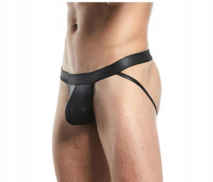 Bielizna Erotyczna dla mężczyzn - czarne majtki męskie z dziurą na tyłku. Wykonane z przyjemnego materiału typu vinyl, lateks, skóra. Zaskocz swoją partnerkę.