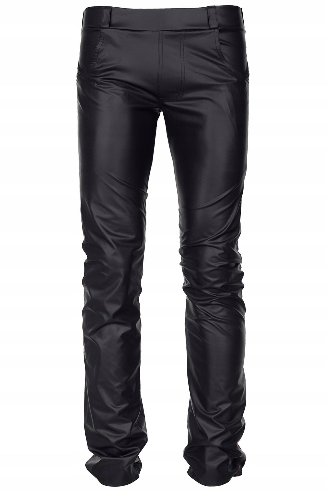 Spodnie z obniżonym stanem. W całości wykonane z elastycznego, czarnego wetlook’a. Wyglądają zjawiskowo, ale są także praktyczne. Obniżony stan, zwężona linia bioder - zmysłowo podkreślają kształt pośladków. Kieszenie z tyłu także są obniżone, aby dodatkowo uwypuklić ich kształt. Kieszenie z przodu i z tyłu to praktyczne rozwiązanie. Można w nich schować klucze, portfel, telefon itp. Spodnie posiadają szlufki do noszenia paska. Naszywka z czerwonej Alcantary z wypalonym laserem logo RFP oraz czerwone przeszycia, podkreślają unikalność produktu.
