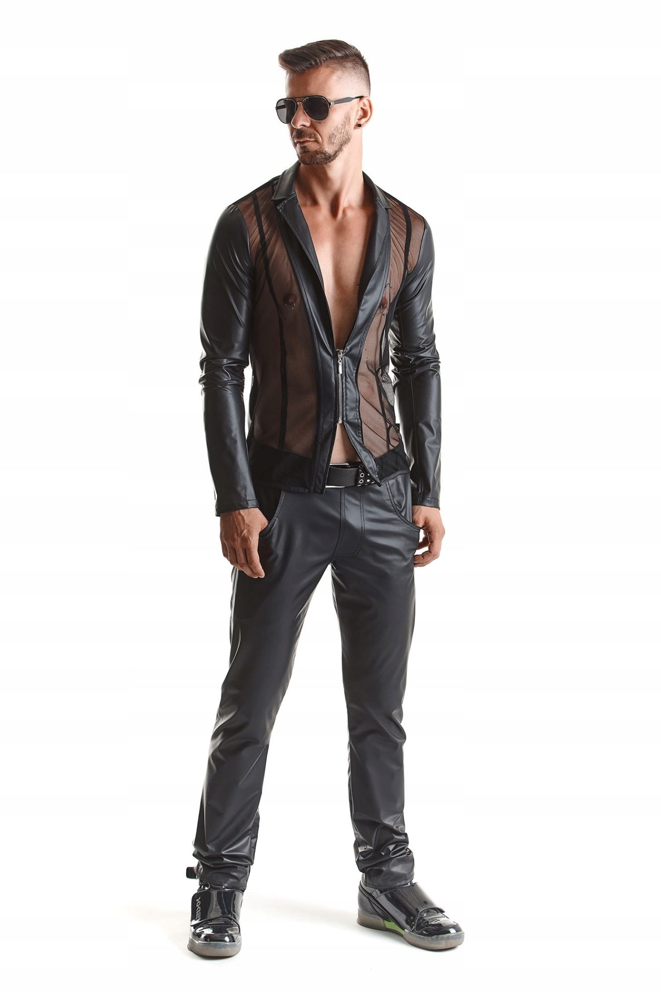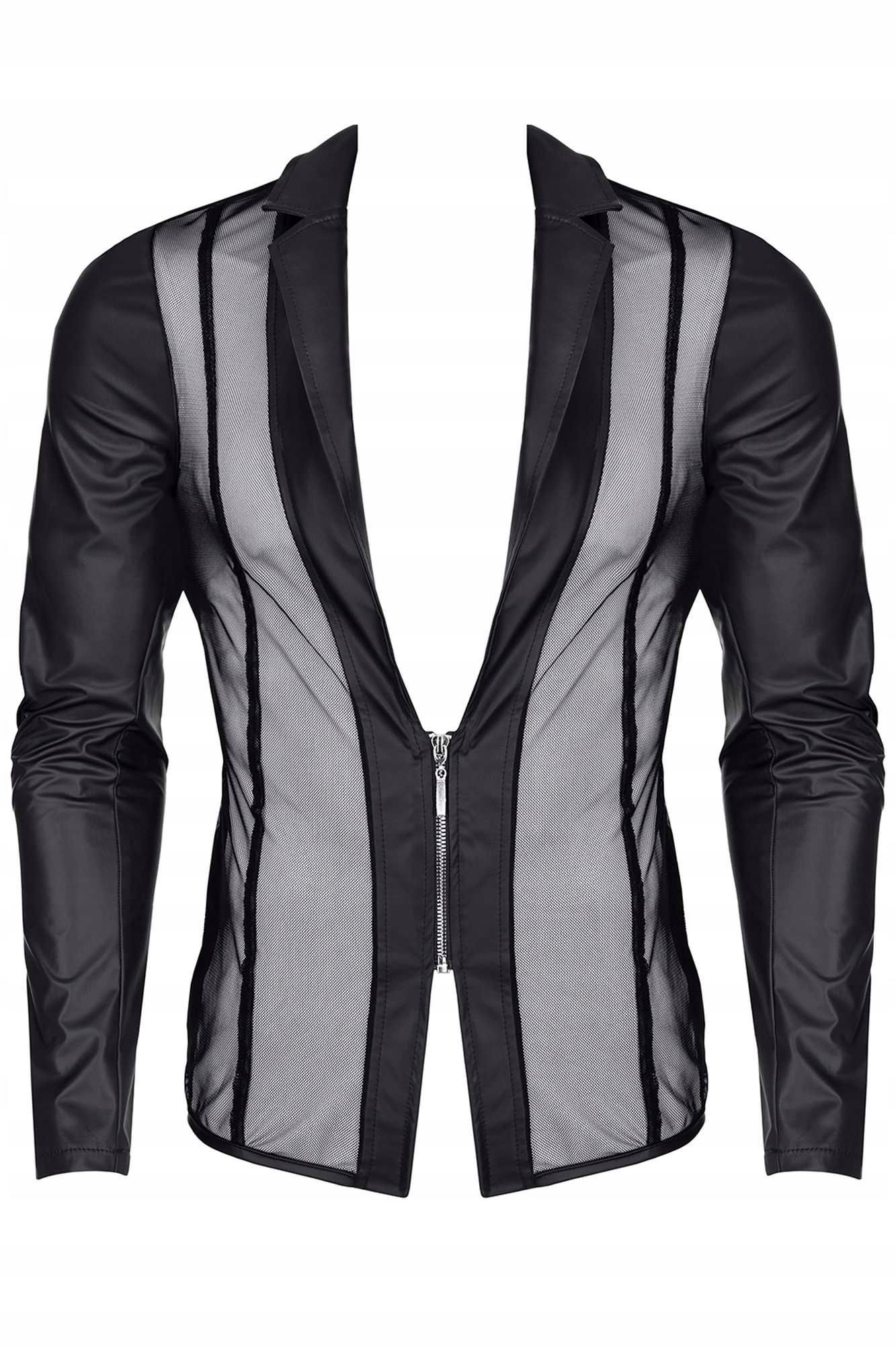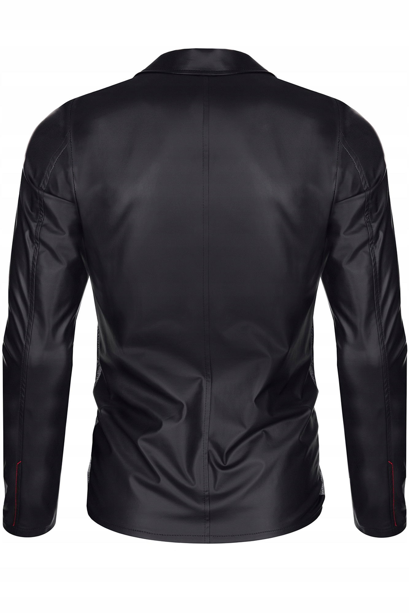 Wyraź siebie i swoje doskonałe, indywidualne poczucie smaku. Marynarka RMDaniele001 spełni Twoje wyrafinowane oczekiwania. Z przodu efektownie eksponuje widoczną klatkę piersiową. Krótki, srebrny ekspres dodaje szyku, pięknie współgra z licznymi pionowymi liniami łączącymi czarną siateczkę i czarny wetlook. Suwaki ozdobione grawerowanym logo RFP. Uwagę zwracają także charakterystyczne, wąskie klapy. To klasyczny detal, wkomponowany w nowoczesny wygląd marynarki. Dodatkowo krój typu Slim-Fit wraz z pionowymi liniami z przodu fantastycznie wyszczupla sylwetkę. Czerwone, ozdobne przeszycia oraz czerwona metka z Alcantary z logo RFP, podkreślają unikalność marynarki.