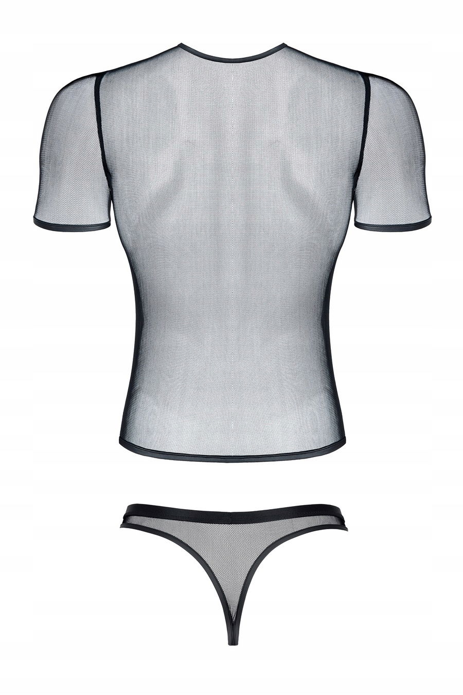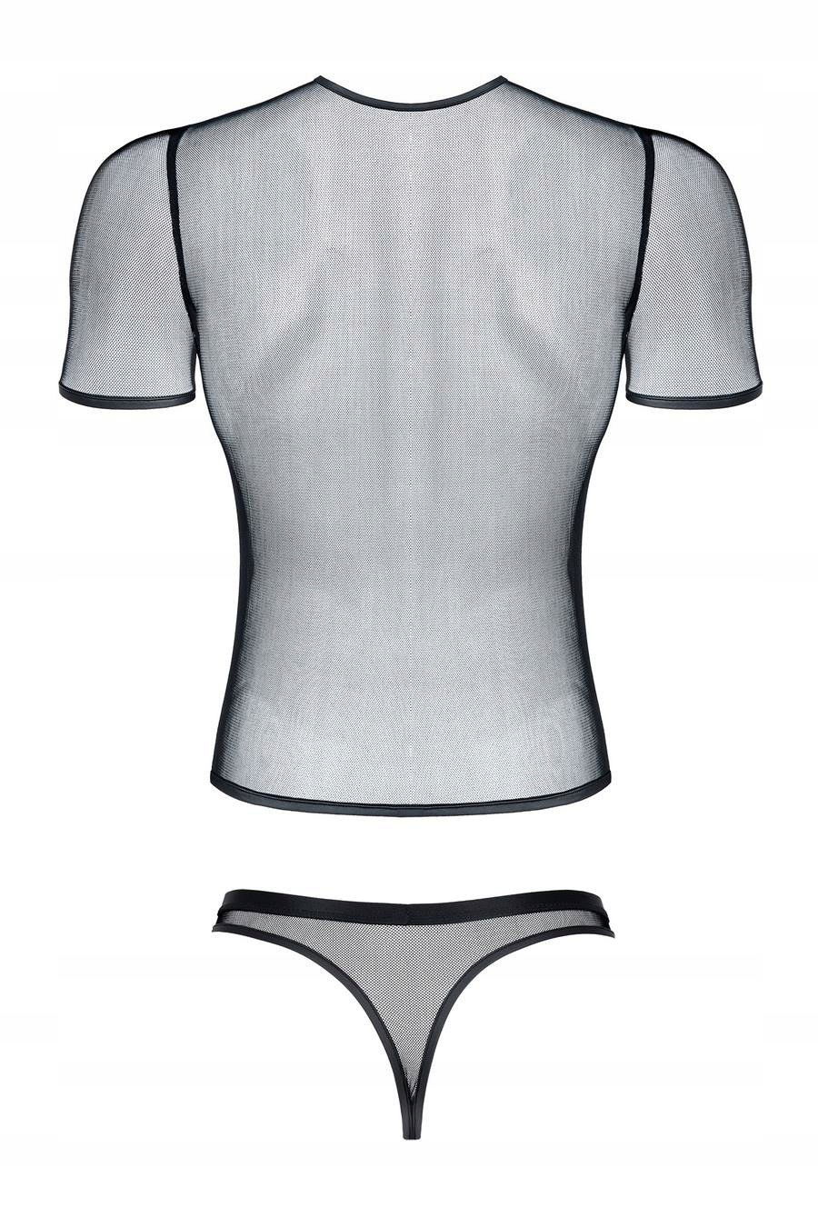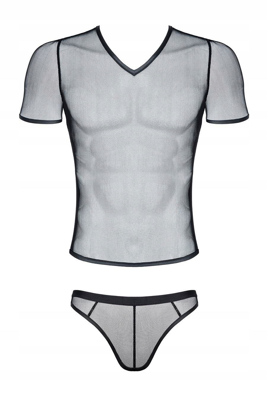 męski komplet z elastycznej siatki: t-shirt w serek, stringi S