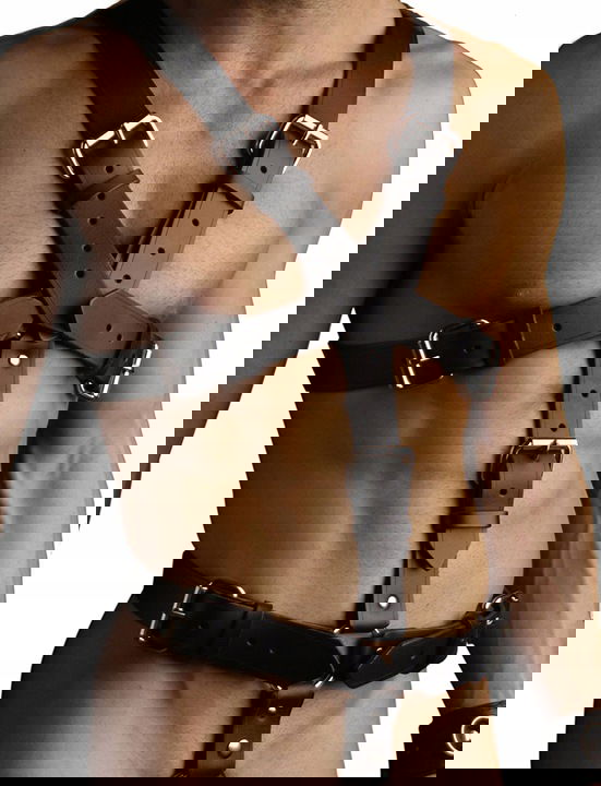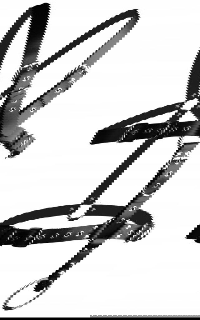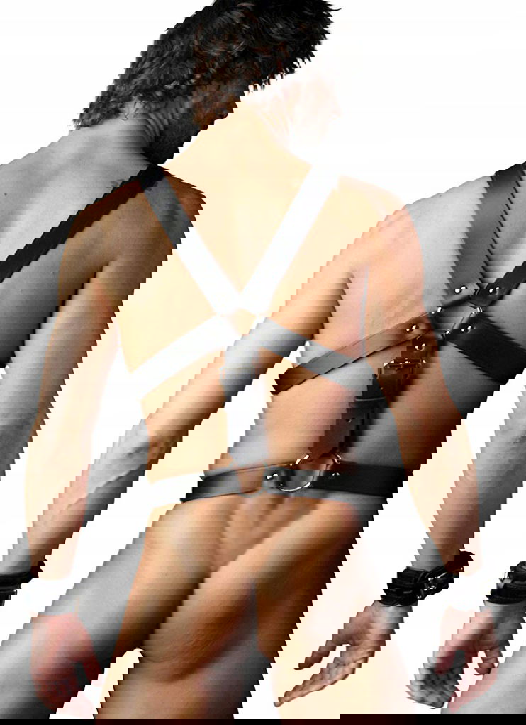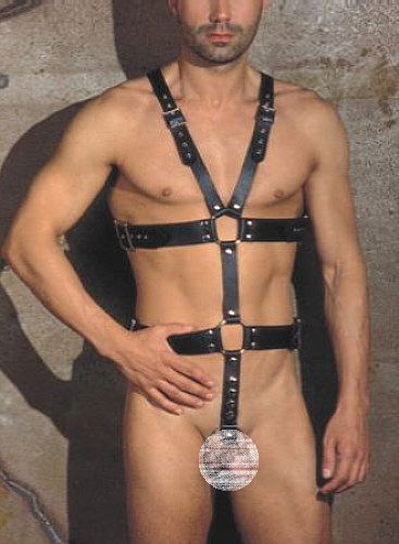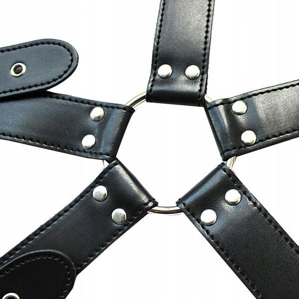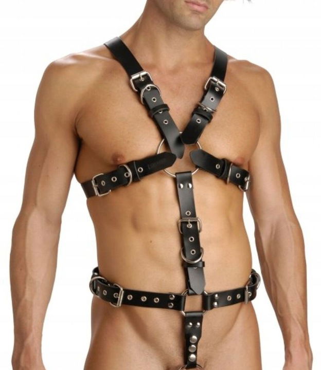 Erotyczna bielizna dla prawdziwych mężczyzn. Czarna skórzanauprząż na klatę z ringiem na penisa. Facet w tym stroju pobudzi każdą kobietę. Jest to doskonały sposób by zaskoczyć swoją partnerkę. Idealne również dla striptizerów / czipentejsów. Męska bielizna erotyczna ! To to czego pragnie każda kobieta. Vinyl, Latex, Skóra, Lycra