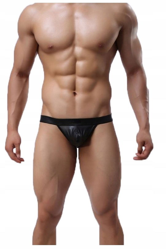 Męska Bielizna Majtki Wetlook Lack Lateks Kostium Piżama Czarna