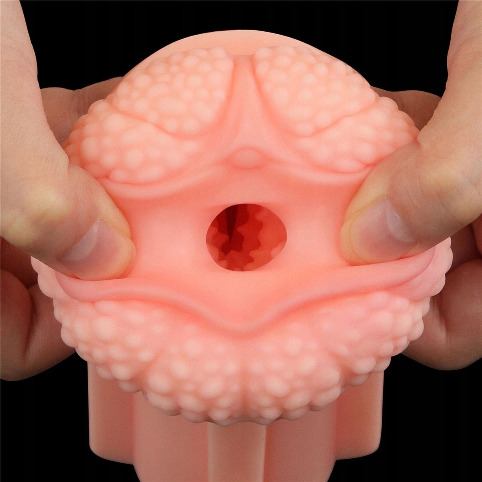 Aby zapewnić bardziej intensywne doznania, tunel ten posiada boczne grzbiety, wypustki i pierścienie na całej długości, które naśladują wewnętrzną teksturę prawdziwego i zapewniają oszałamiające doznania, które przebijają prawdziwą pracę ręczną. Po prostu podziwiaj prezentację lovetoy i doświadcz prawdziwej satysfakcji na tym niebiańskim, zwiniętym połączeniu kanału przyjemności.