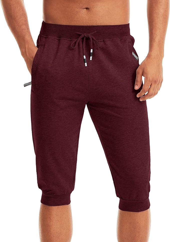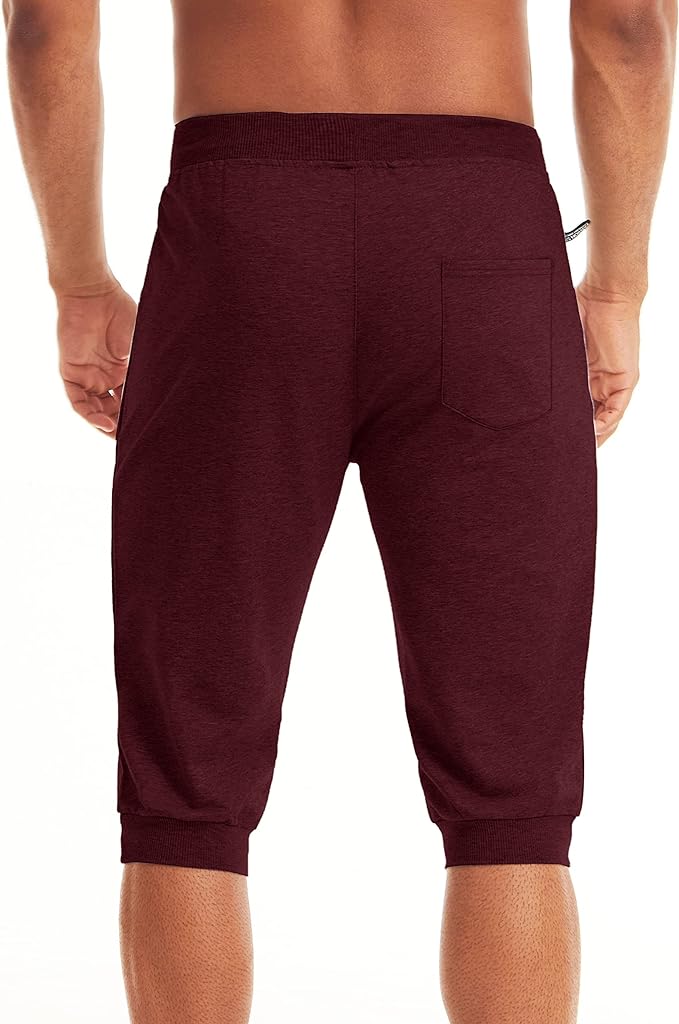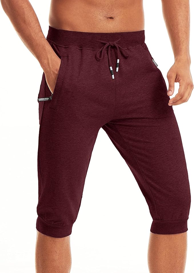 Męskie spodenki o długości 3/4, bawełniane spodenki sportowe do biegania z regulowanym sznurkiem i kieszeniami na zamek błyskawiczny.