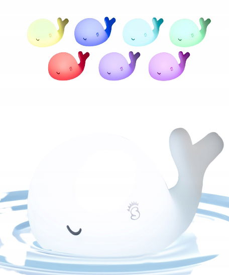 Lampka Wielorybcio to nie tylko zabawa w wodzie, ale także lampka pomocna w usypianiu.