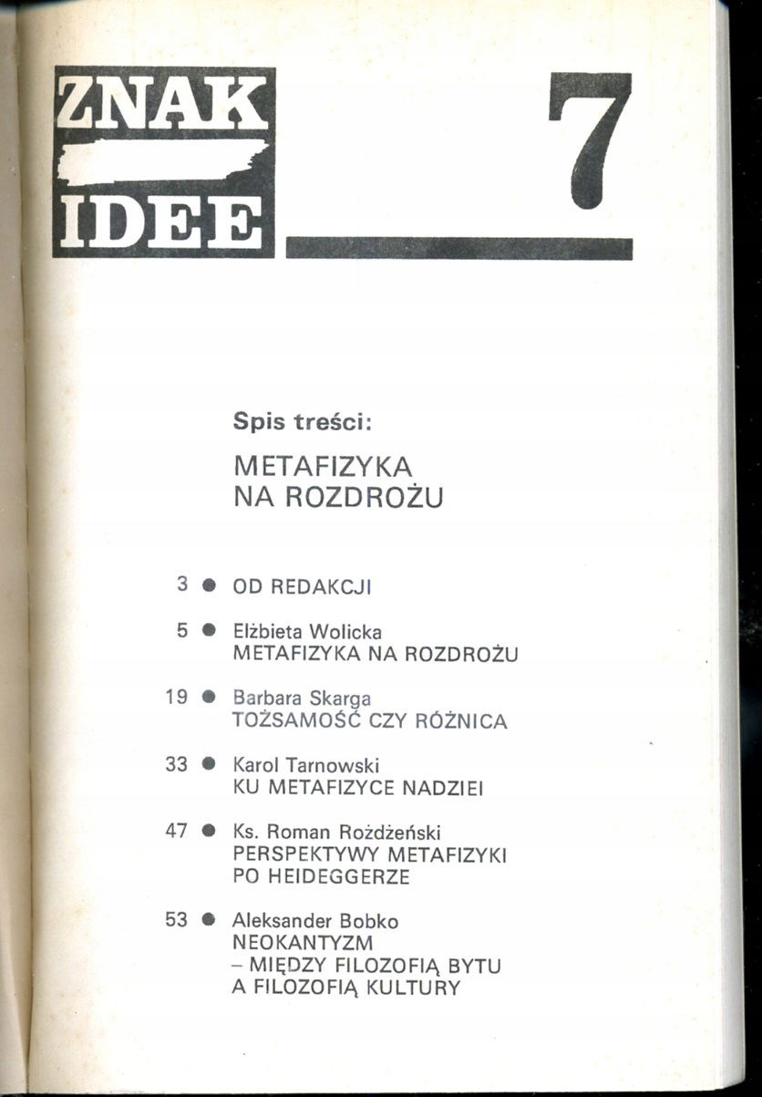Metafizyka na rozdrożu Znak idee 7 red. Karol Tarnowski