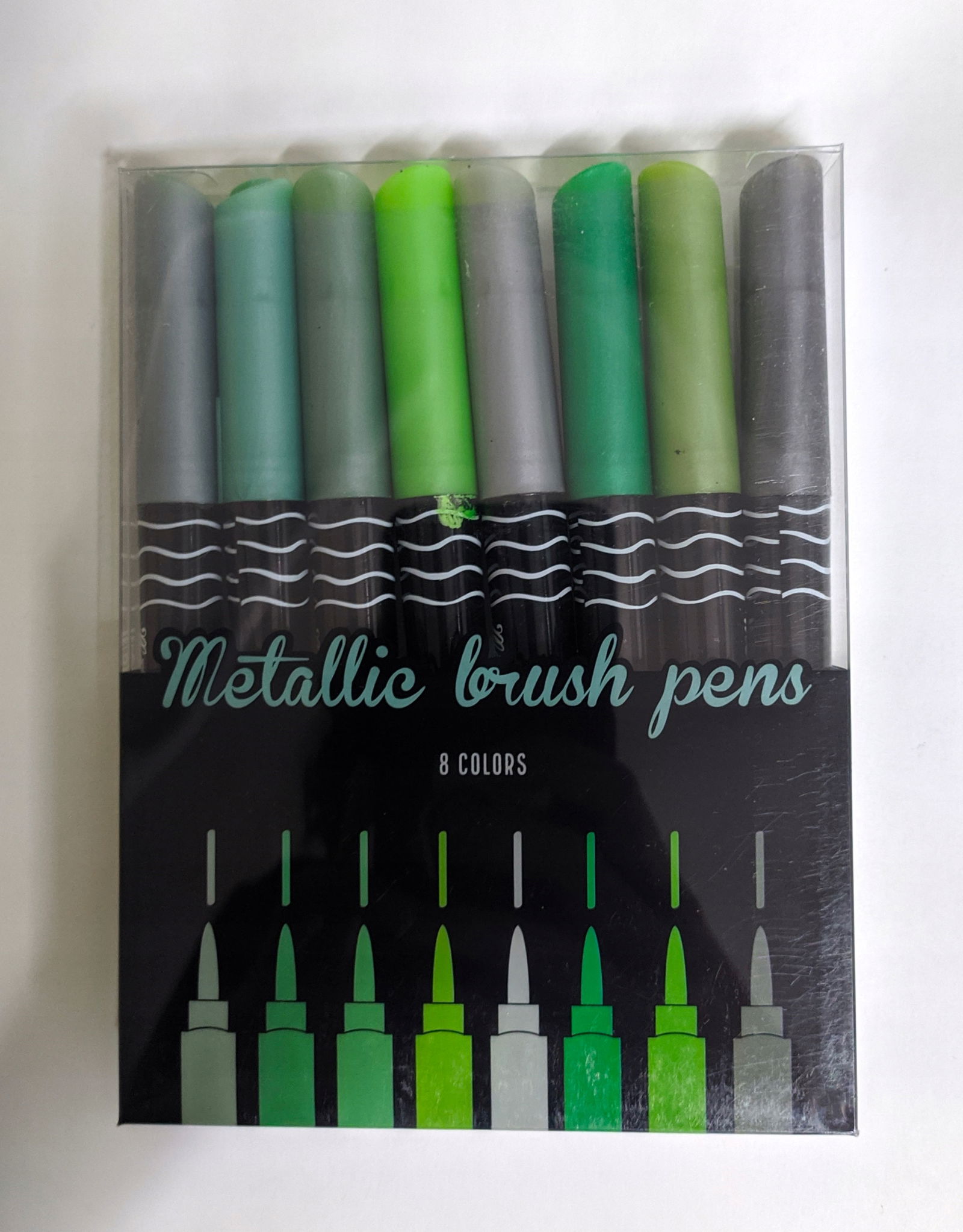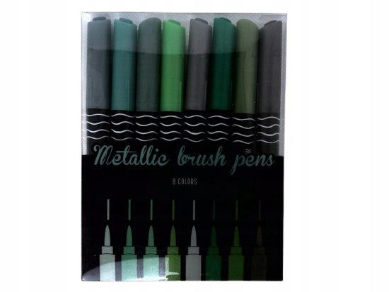METALICZNE PISAKI PĘDZELKOWE DO KALIGRAFII MEGA ZESTAW 8 SZT ZIELONE SZARE