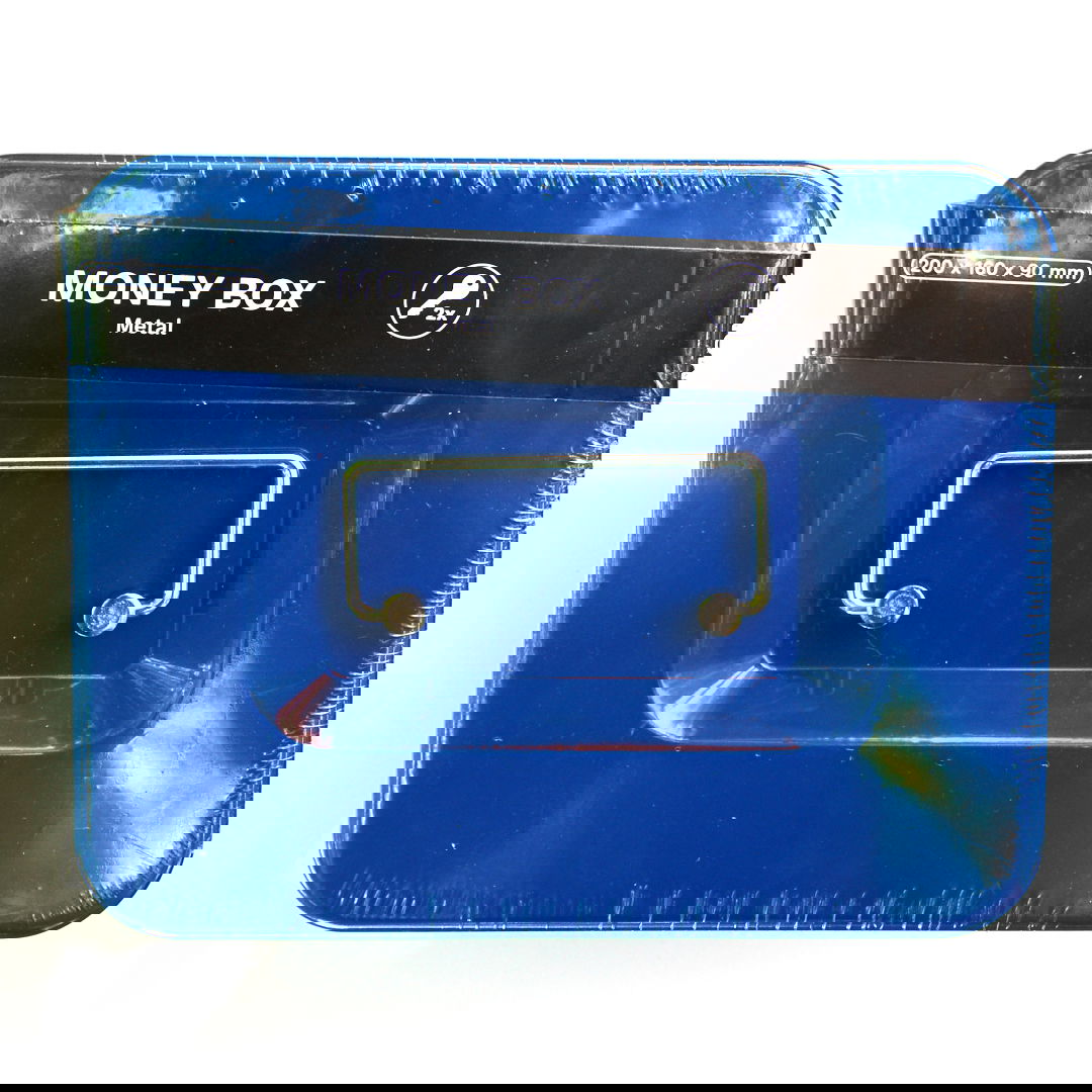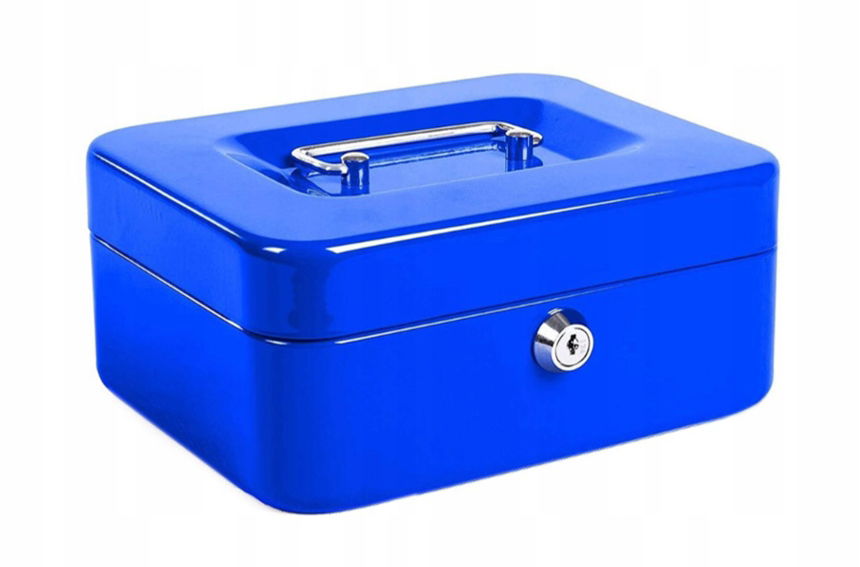 Metalowa Kasetka Skarbonka Duży Sejf Na Pieniądze Bilon Niebieski 16x20x9cm