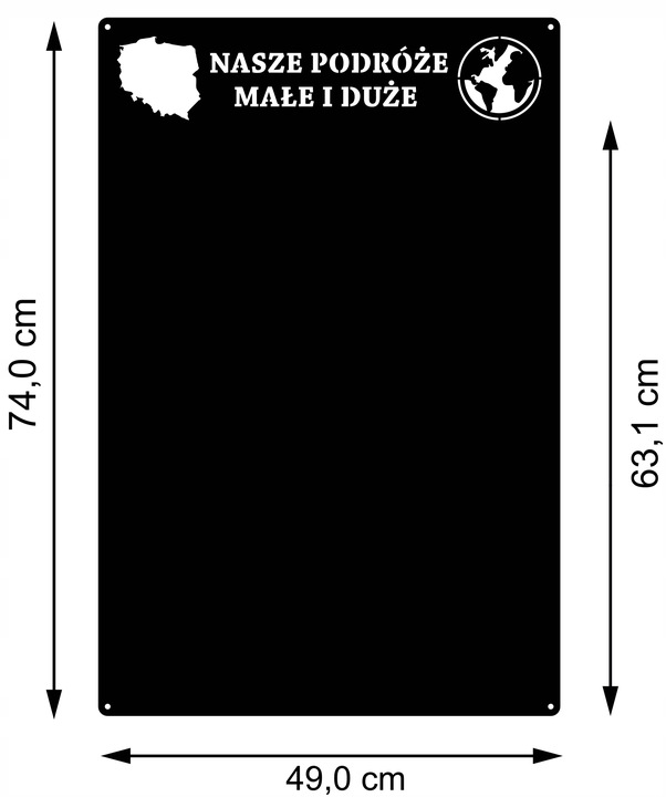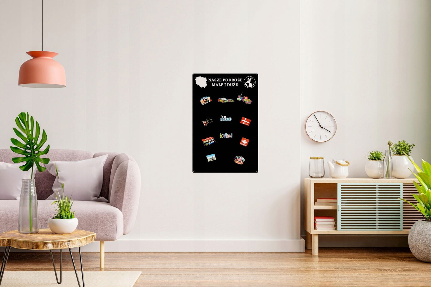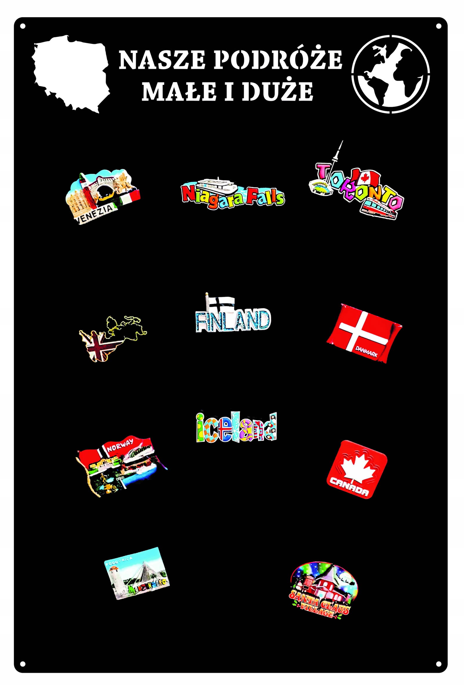 METALOWA TABLICA NA MAGNESY OZDOBY CZARNA DUŻA PODRÓŻE UNIWERSALNA 74X49CM