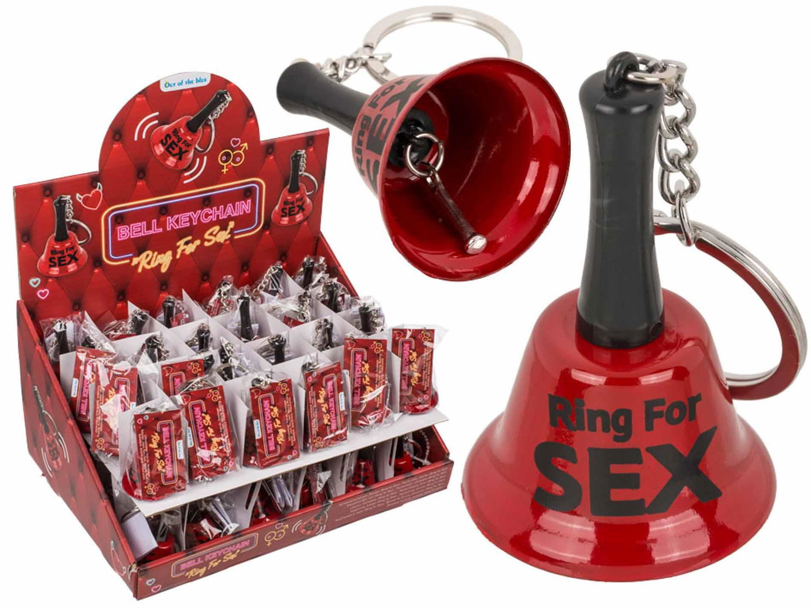 Opis: • Metalowy brelok z dzwonkiem • Napis: "Ring for sex" • Materiał: metal • Wysokość: 4,5 cm • Opakowanie: pudełko PVC