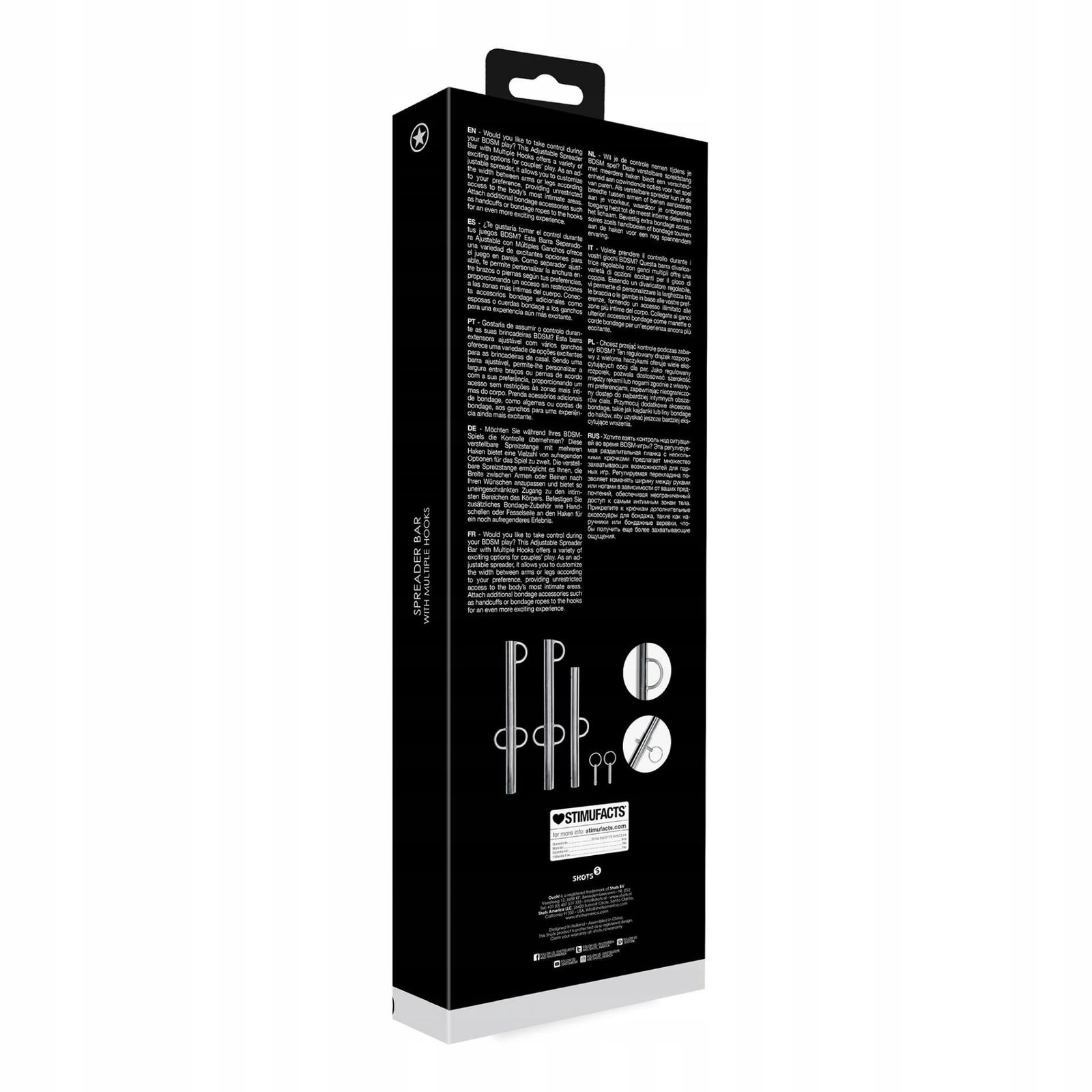 Chcesz przejąć kontrolę podczas zabawy BDSM? Ten regulowany drążek rozporowy z wieloma haczykami oferuje wiele ekscytujących opcji dla par. Regulacja pozwala dostosować szerokość między rękami lub nogami zgodnie z własnymi preferencjami, zapewniając nieograniczony dostęp do najbardziej intymnych obszarów ciała. Przymocuj dodatkowe akcesoria bondage, takie jak kajdanki lub liny bondage do haków, aby uzyskać jeszcze bardziej ekscytujące wrażenia.