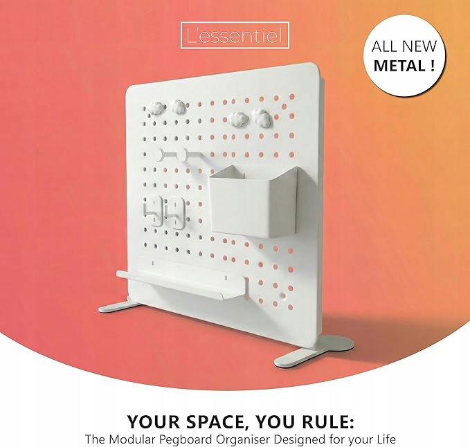 - Dołączone komponenty: Płyty pegboardowe, stojak, półka, pojemnik, haczyki, magnesy, okrągłe haczyki