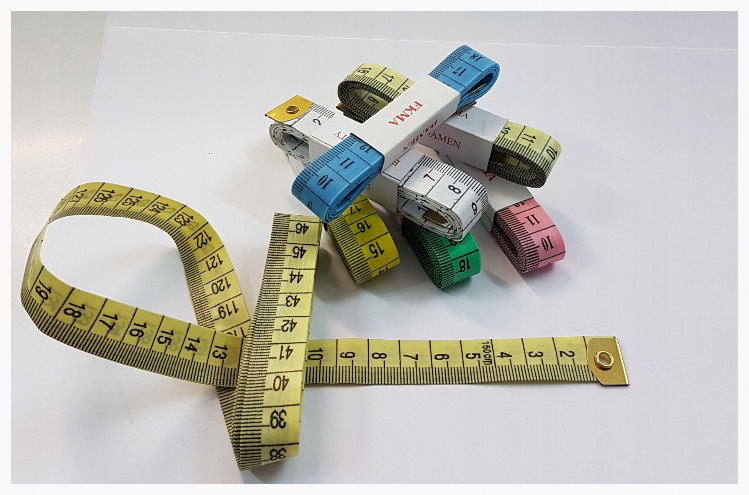 Miara krawiecka, przydatna w każdym sklepie spożywczym, zakładzie krawieckim i domu. Elastyczna i trwała, posiada wyraźnie zaznaczone odległości oraz duże cyfry znajdujące się na miarce.
